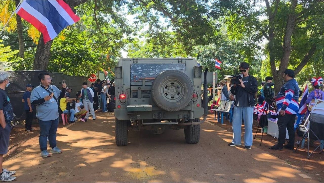 วันที่ 10 ต.ค. 68 ผู้สื่อข่าวรายงานบรรยากาศ บริเวณบ้านหนองจาน อำเภอโคกสูง จังหวัดสระแก้ว ว่า เจ้าหน้าที่ทหาร ตำรวจ อาสารักษาดินแดน (อส.) และชุดรักษาความปลอดภัยหมู่บ้าน (ชรบ.) รวมตัวประจำจุดสแตนด์บายรอบหมู่บ้าน เพื่อเตรียมความพร้อมรับสถานการณ์ฉุกเฉิน ขณะเดียวกันสื่อมวลชนจากหลายสำนักปักหลักทำข่าวอย่างต่อเนื่อง โดยมีชาวบ้านและผู้สนใจทยอยเดินทางมาเฝ้าติดตามสถานการณ์ ซึ่งเจ้าหน้าที่ได้มีการจัดกำลังและการเตรียมความพร้อมเจ้าหน้าที่ทหารและตำรวจวางกำลังตามแนวทางเข้า-ออก ของหมู่บ้านและพื้นที่โดยรอบ มีการตรวจตราและสังเกตการณ์อย่างต่อเนื่องเพื่อรับมือเหตุฉุกเฉิน