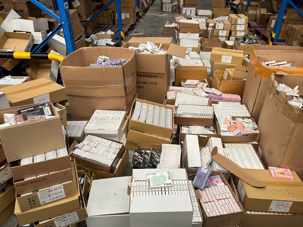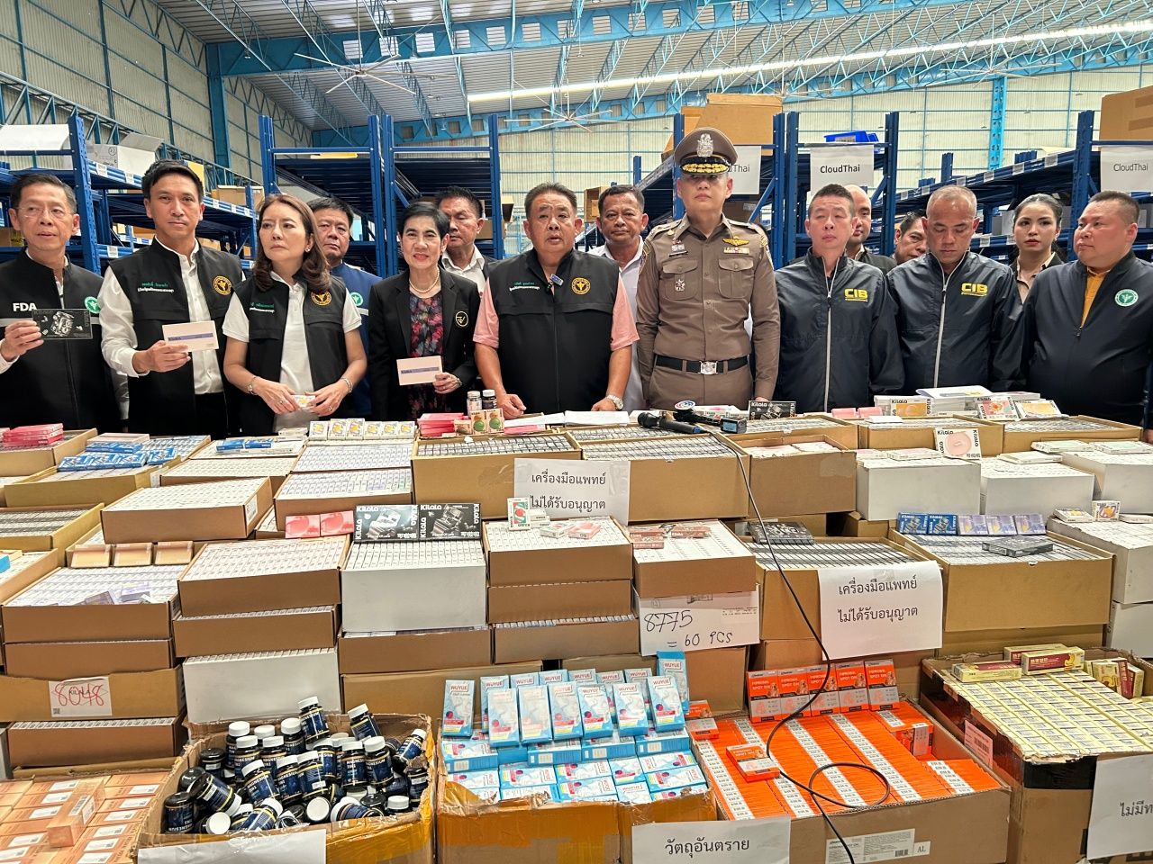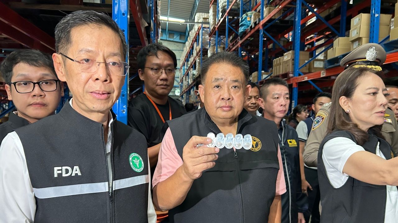 ต่อมาวันที่ 16 ตุลาคม พ.ศ. 2568 เจ้าหน้าที่ตำรวจ กก.4 บก.ปคบ. ได้ร่วมกับสำนักงานคณะกรรมการอาหารและยา นำหมายศาลจังหวัดสมุทรปราการเข้าตรวจค้นสถานที่จัดเก็บและกระจายสินค้าภายในโกดังแห่งหนึ่งในพื้นที่ตำบลบางเสาธง อำเภอบางเสาธง จังหวัดสมุทรปราการ ตรวจยึดและอายัดของกลางจำนวน 385,070 ชิ้น ส่งพนักงานสอบสวน กก.4 บก.ปคบ. ดำเนินคดีรายละเอียดดังนี้