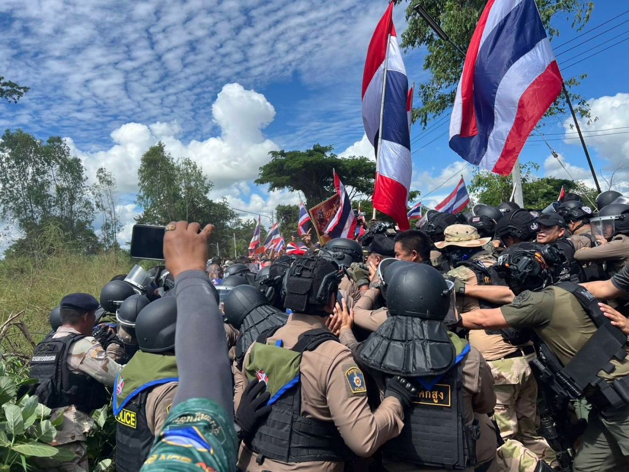 ขณะที่บางช่วงมีการตะโกนเรียกให้ “อย่าเดินลงจากถนน” และ “ให้เดินเส้นหลักเท่านั้น” เพื่อป้องกันอันตรายจากพื้นที่ที่ยังไม่ผ่านการตรวจสอบทุ่นระเบิดหลังจากสถานการณ์เริ่มตึงเครียด ก่อนเจ้าหน้าที่จะเชิญ นายวีระ กับพวกไปพูดคุยที่ สภ.โคกสูง ท่ามกลางเสียงเรียกร้องของประชาชนบางส่วนที่ยังคงอยู่ในพื้นที่