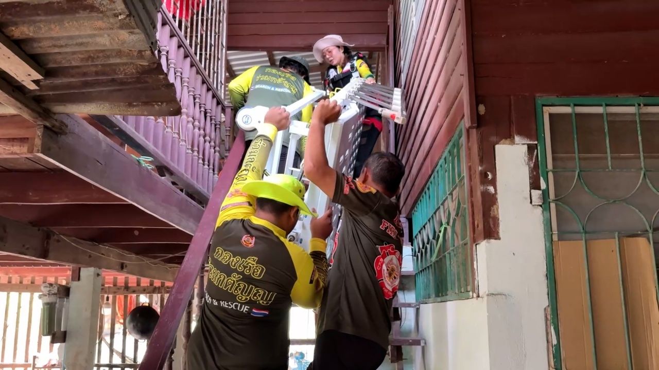 ทางด้านเจ้าหน้าที่อาสาสมัครมูลนิธิร่วมกตัญญูจังหวัดชัยนาท เร่งขนย้ายผู้ป่วยติดเตียง และอุปกรณ์ต่างๆ ขึ้นชั้น 2 ของบ้านเป็นครั้งที่ 3 เพื่อให้ผู้ป่วยอยู่ในที่ปลอดภัย และสำหรับบ้านชั้นเดียวได้นำส่งโรงพยาบาลสรรพยาเป็นการชั่วคราว จนกว่าสถานการณ์น้ำจะคลี่คลาย