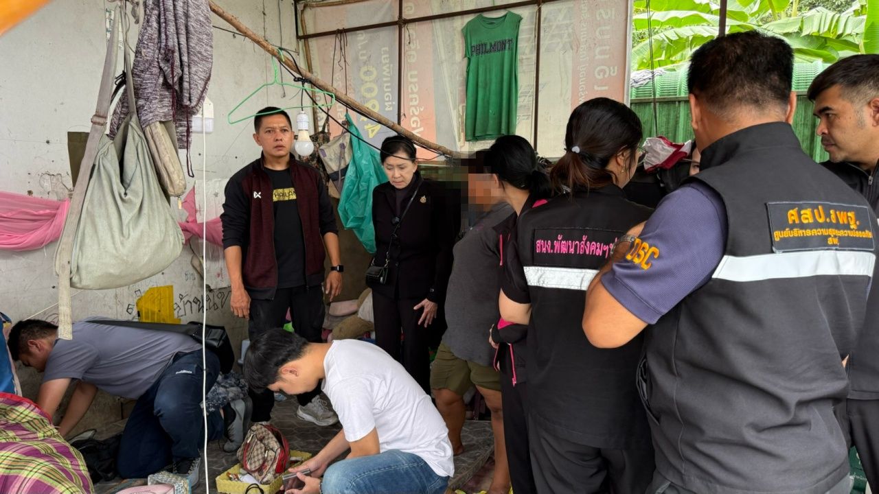 เมื่อไปถึงพบว่า สภาพบ้านหลังดังกล่าว เป็นเพิงพักริมถนน ใช้ผ้าใบและสังกะสี มาทำเป็นฝาผนัง สภาพทรุดโทรม รก และมีกลิ่นเหม็น ห้องน้ำไม่มีประตู ใช้เพียงผ้าคลุมกั้นไว้ สภาพบ้านความเป็นอยู่ไม่มีความปลอดภัย ขณะที่เด็กๆ ออกไปวิ่งเล่นกันตามถนนเสี่ยงอันตรายรถชน ส่วน ด.ช. 7 ขวบ น้องคนสุดท้องที่พิการ นอนอยู่บนพื้นที่มีผ้าปูรอง ปัสสาวะ อุจจาระอยู่บนที่นอน