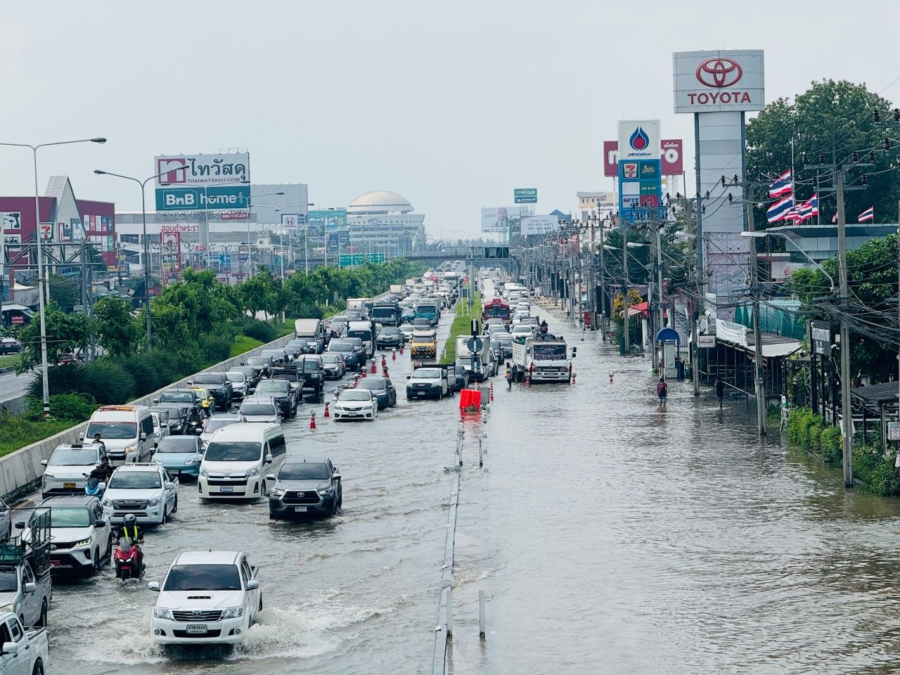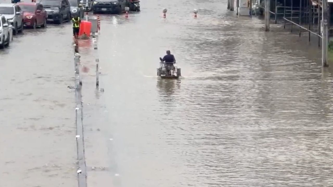 แม่น้ำเจ้าพระยาเอ่อท่วมช่องทางคู่ขนาน ใต้สะพานพระราม 5 ขาเข้า น้ำท่วมสูงกว่า 50 ซม. เตือนเลี่ยงเส้นนครอินทร์-บางศรีเมือง การจราจรติดขัด