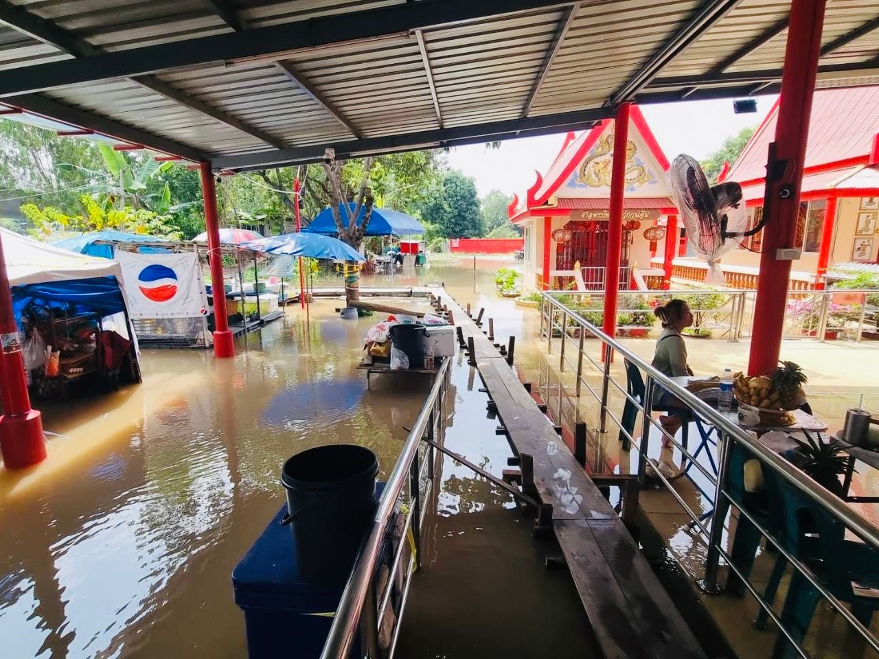 น.ส.ฐิติมา บัวคำ อายุ 35 ปี ชาวบ้าน กล่าวว่า ก่อนหน้านี้ช่วงต้นเดือนกันยายนที่ผ่านมา น้ำได้ทยอยเข้าท่วมพื้นที่ชุมชนแต่ปริมาณน้ำยังไม่เยอะเท่านี้ กระทั่งอาทิตย์ที่ผ่านมา น้ำในแม่น้ำมีปริมาณสูงขึ้นทำให้น้ำไหลทะลักเข้าท่วมบ้านในชุมชนทั้งหมด ล่าสุดเมื่อวานก่อนน้ำก็ไหลทะลักข้ามแนวกระสอบทรายเข้าท่วมศาลาศาลหลักเมือง ที่ผ่านมาชาวบ้านเข้าใจสภาพว่าการอยู่ติดริมแม่น้ำเจ้าพระยา เพราะคงหนีไม่พ้นเรื่องน้ำ แต่ในปีนี้ตนมีความรู้สึกว่าน้ำมามากกว่าปกติ เพราะไม่เคยท่วมถึงพื้นอาคารศาลมาก่อน แต่ปีนี้น้ำเอ่อล้นท่วมถึงพื้นอาคาร น่าจะมีปริมาณน้ำในแม่น้ำที่สูงขึ้น