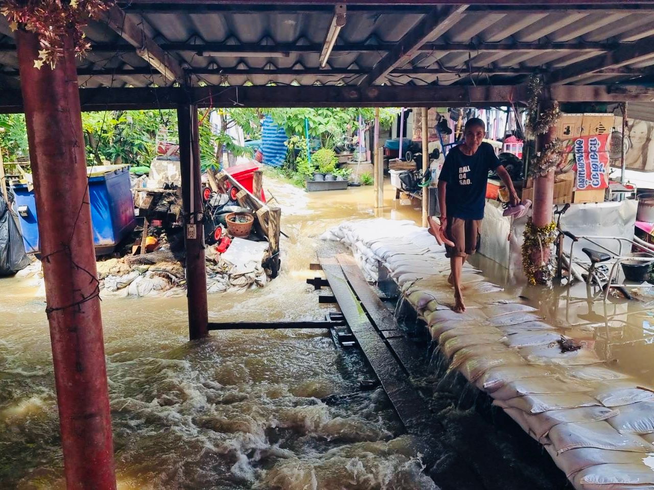 น้ำทะลักข้ามแนวกระสอบทราย ท่วมชุมชนศาลเจ้าพ่อหลักเมือง(เดิม) นนทบุรี ระดับน้ำสูงกว่า 50 ซม. ขณะที่ โรงเรียนรุ่งเรืองวิทยา เลื่อนเปิดเรียน หลังน้ำท่วมในอาคาร หากยังไม่ดีขึ้น อาจต้องปรับเป็นเรียนออนไลน์