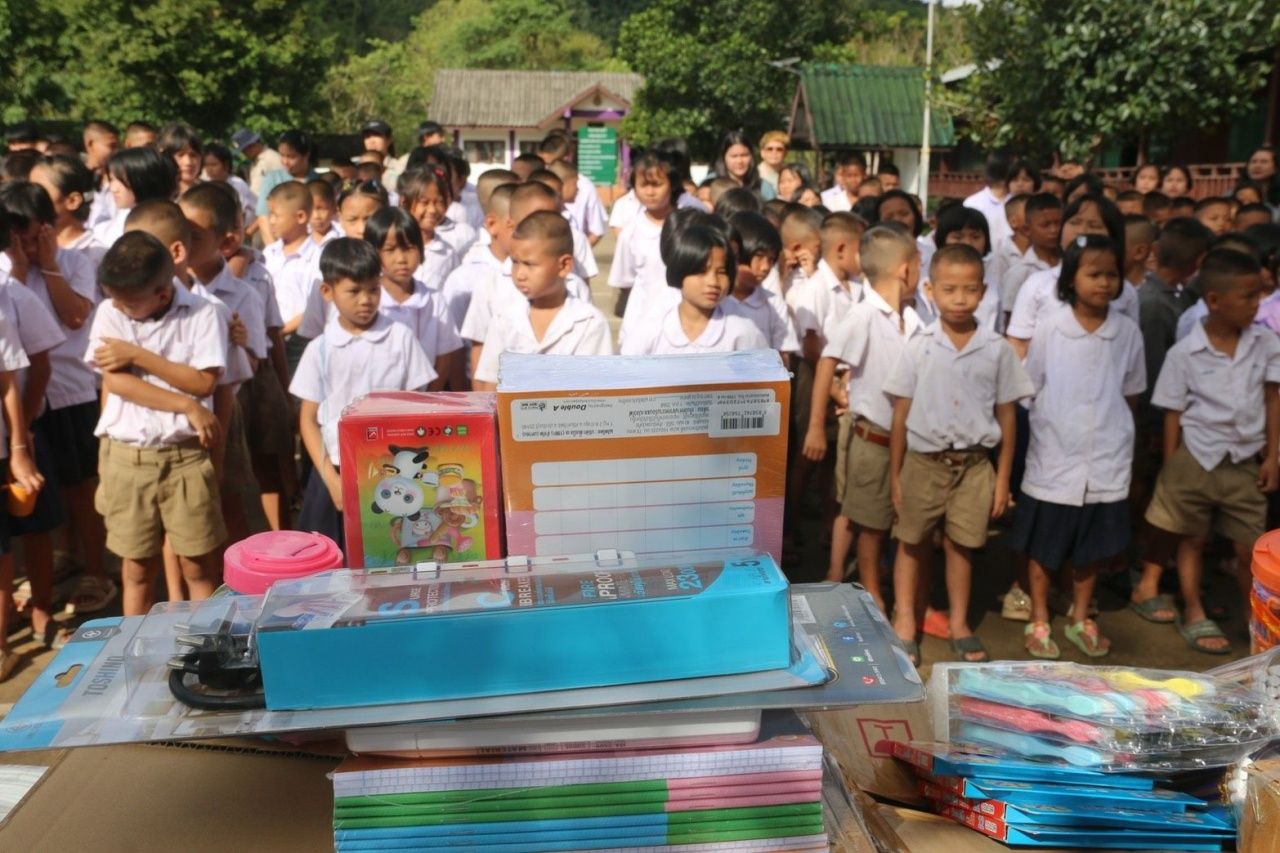 ภาคเอกชนติดตั้งพัดลม มอบอุปกรณ์การศึกษา ทุนการศึกษา แก่นักเรียนโรงเรียนตำรวจตระเวนชายแดน ในถิ่นทุรกันดาร ที่ จ.กาญจนบุรี