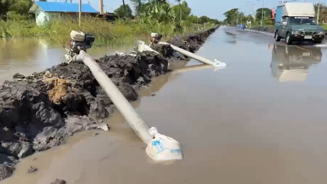 เจ้าหน้าที่แขวงการทางฯ นำรถแบ็กโฮเร่งทำแนวป้องกันน้ำล้นตลิ่ง-ติดตั้งเครื่องสูบน้ำ เร่งกู้ถนนทางหลวง "สายเสนา-ผักไห่" ถนนสายสำคัญที่ ปชช. ใช้ในการเดินทางสัญจร และเพื่อลำเลียงความช่วยเหลือให้กับผู้ประสบภัย
