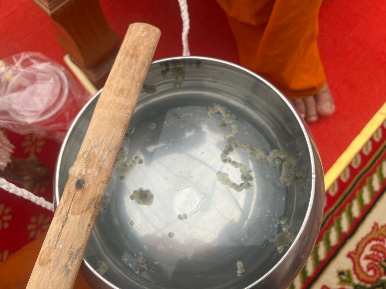 ระหว่างทำพิธีหลวงปู่ศิลาและกวักมือเรียกนายกแจ๊ดให้เข้าพบและมือชี้ให้ดูไปในอ่างน้ำมนต์ นายกแจ๊ดจึงได้ขอใช้ โทรศัพท์มือถือถ่ายรูป ซึ่งท่านได้อนุญาต เหมือนเป็นความตั้งใจของหลวงปู่ศิลาที่จะให้โชคลาภกับนายกแจ๊ดโดยตรง เพื่อให้ไปทำประโยชน์ต่อ