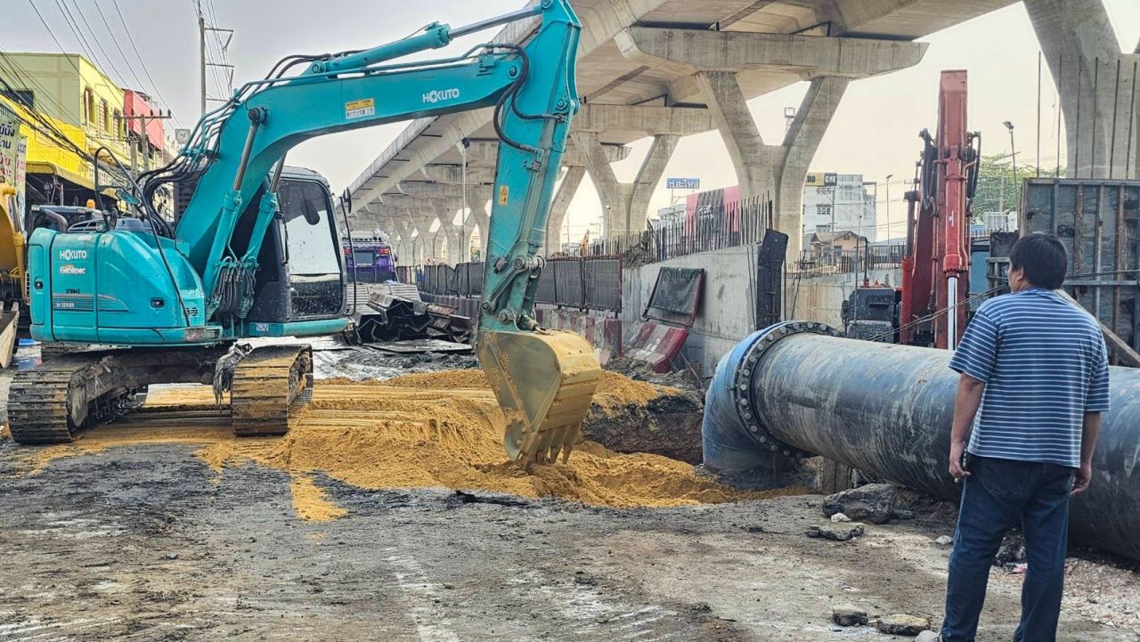 เจ้าหน้าที่ใช้เวลา 16 ชั่วโมง ซ่อมท่อประปาขนาดใหญ่แตก จนเป็นสาเหตุทำให้น้ำซึม ถนนพระราม 2 ยุบ จ่ายน้ำประปาให้ชาวบ้าน เตรียมคืนพื้นที่ เปิดการจราจร
