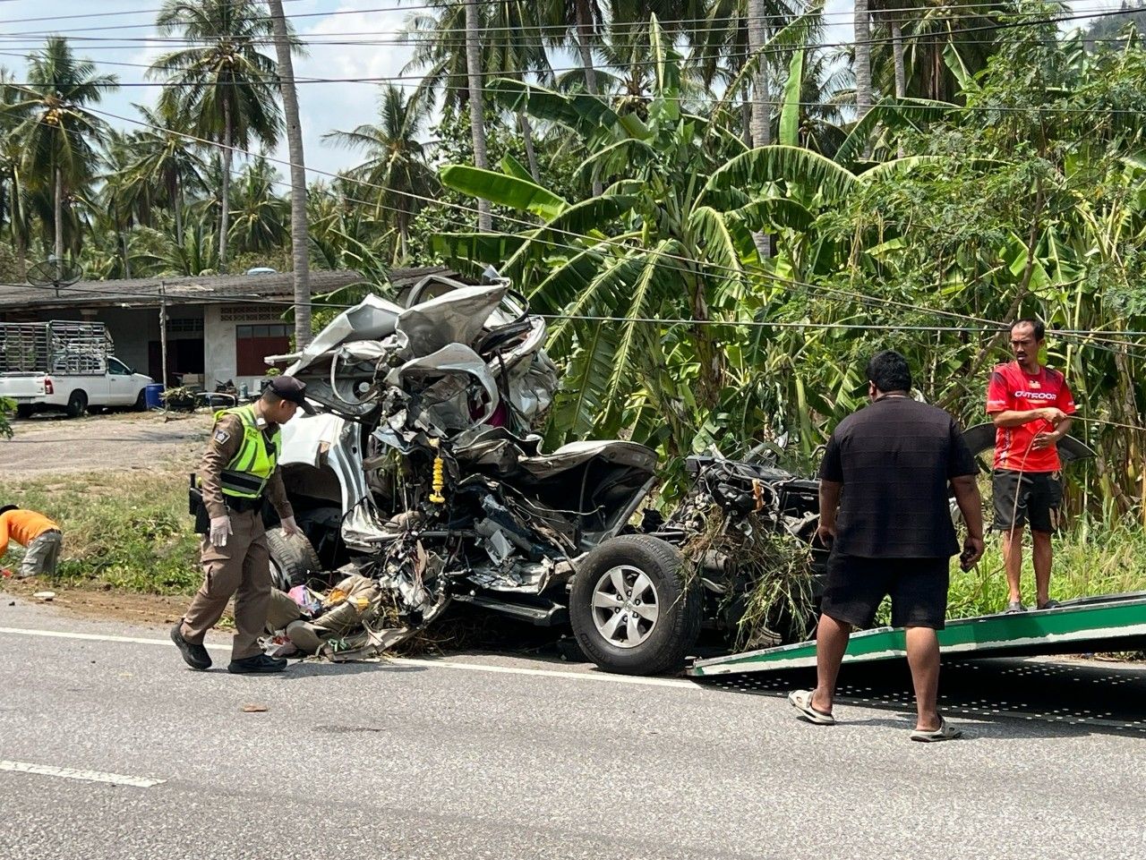 อดีตพนักงานธนาคาร ขับรถเสียหลัก พุ่งลงข้างทางฟาดเสาไฟฟ้าข้างทาง ที่ประจวบฯ รถพังยับ ดับยกคัน 4 ศพ มีเด็กชายวัย 2 ขวบด้วย