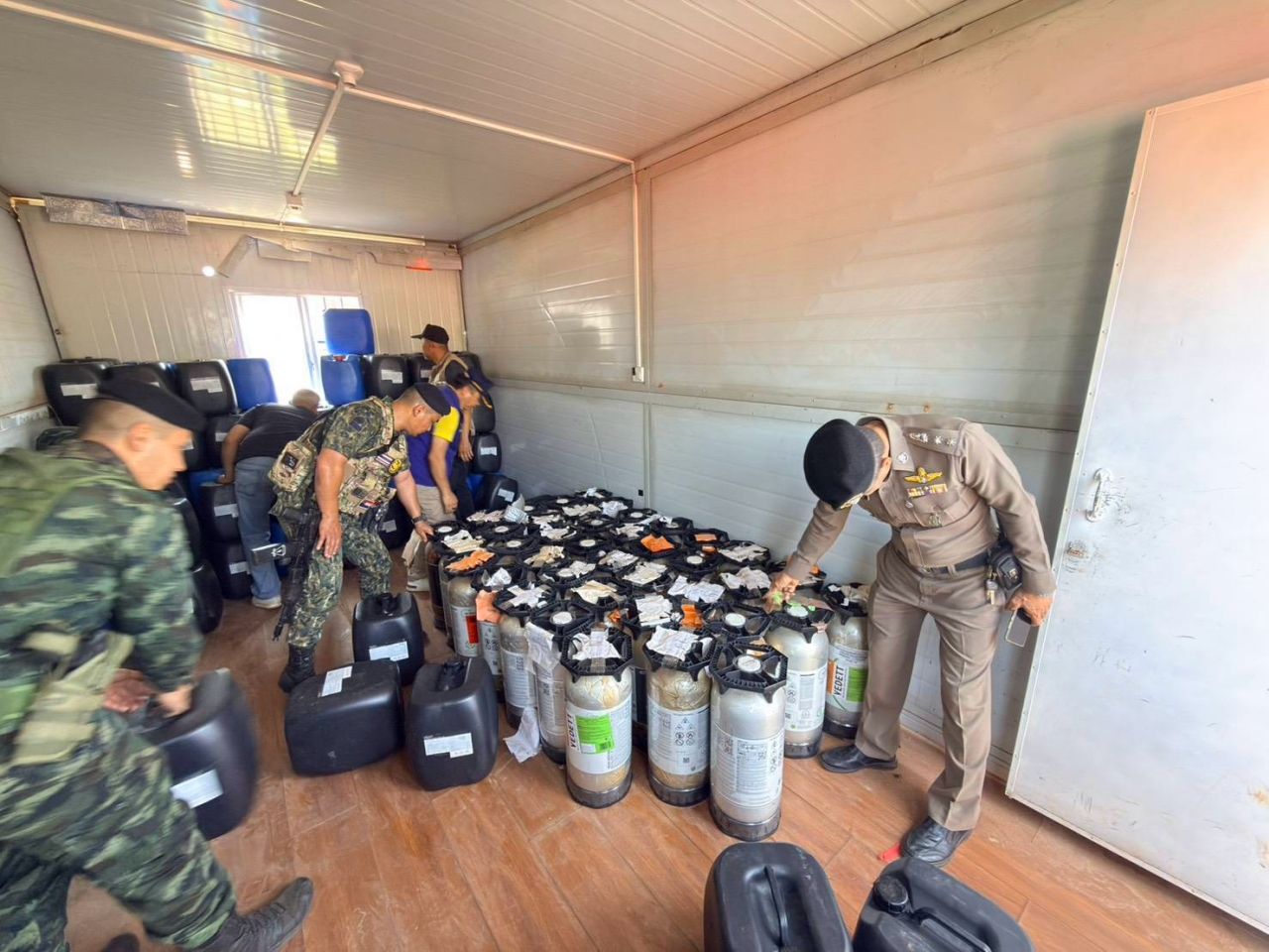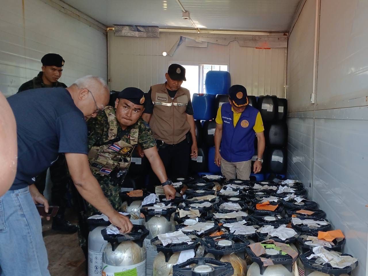 ที่เกิดเหตุ พบนายภูรินทร์ อายุ 58 ปี ชาว จ.นครสวรรค์ แสดงตนเป็นผู้ดูแลตู้คอนเทนเนอร์ และยินยอมให้เจ้าหน้าที่ ตัดแม่กุญแจที่ล็อคตู้คอนเทนเนอร์ไว้ เพื่อเข้าไปตรวจค้นภายในตู้คอนเทนเนอร์ โดยนายภูรินทร์ เป็นผู้นำตรวจค้น และมีนายสถาพร บุญสมจิตร ผู้ใหญ่บ้าน ม.9 บ้านพระเจดีย์สามองค์ เป็นพยานในการตรวจค้น