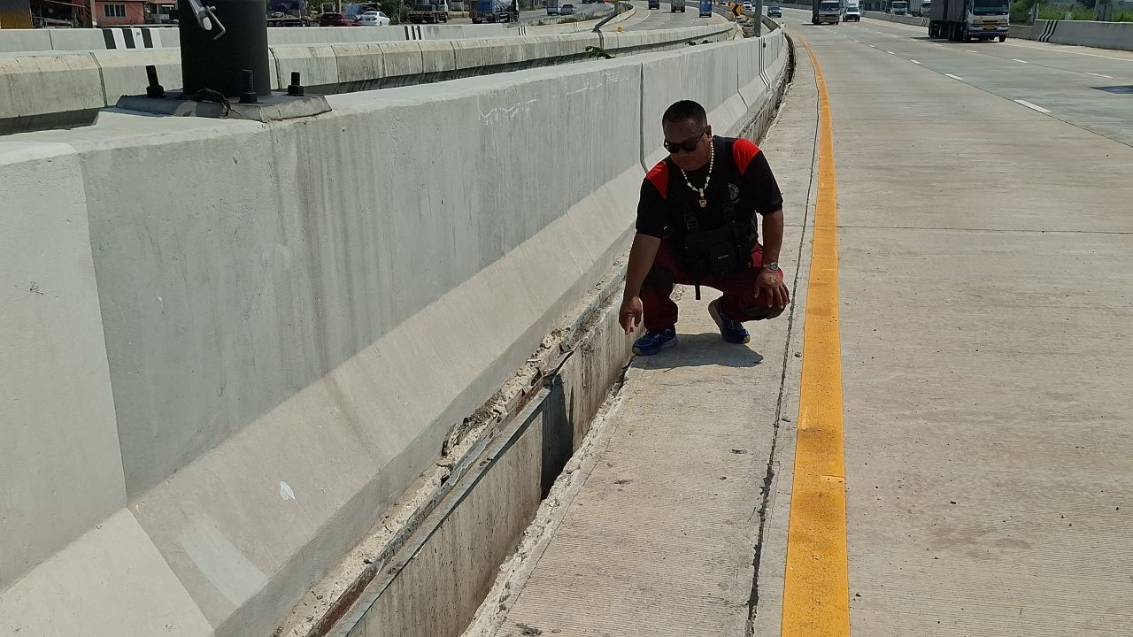 ที่เกิดเหตุพบว่าบนกลางสะพาน ในช่องเลนขวาสุดพบรถกระบะนิสสัน นาวาร่า สีเทา ทะเบียนกรุงเทพมหานคร จอดดับเครื่องอยู่ โดยที่เบาะคนขับพบร่างผู้ได้รับบาดเจ็บนอนหมดสติ ที่หน้าท้องมีเหล็กฉากขนาด 2 นิ้ว ยาวประมาณ 1 เมตรเสียบคาอยู่ เจ้าหน้าที่กู้ภัยพยายามที่จะทำการช่วยเหลือและทำ CPR แต่ไม่เป็นผล พบว่าคนขับได้เสียชีวิตแล้วจึงประสานเจ้าหน้าที่ตำรวจและแพทย์จากสถาบันนิติวิทยาศาสตร์ กระทรวงยุติธรรม มาตรวจสอบ