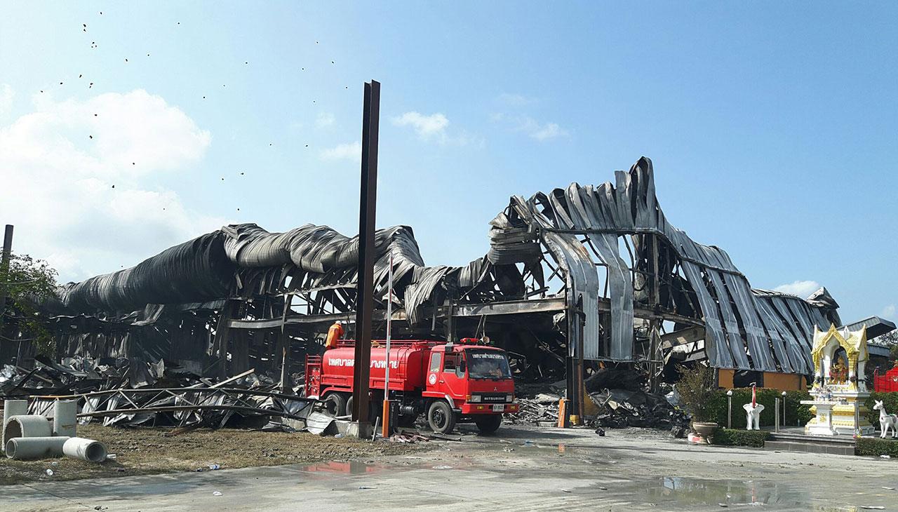- ไม่ถึง 24 ชม.! ไฟปะทุเผาโรงงานในนิคมฯ ทองโกรว์ อีกรอบ อาคารทรุดตัวหนัก