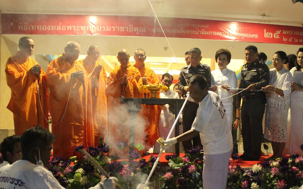เมื่อเวลา 19.00 น. วันที่. 25 มี.ค.60 พล.ต.ท.ชาญเทพ เสสะเวช ผบช.ภ.1 เป็นประธานฝ่าย ฆารวาส พร้อมด้วยพล.ต.ต.สุศักดิ์. ปรักกมะกุล ผบก.ภ.จว.นนทบุรี พ.ต.อ. อรรณพ นวมนาคะ. ผกก.สภ.บางบัวทอง นายสำราญ นันทนีย์ อธิการบดีวิทยาลัยกรมการปกครอง นายไพรัตน์ จันทร์ผลหอม นายอำเภอบางบัวทอง นายพิศาล เตชะวิภาค ร่วมพิธีเททองหล่อ พระพุทธบรมราชาธิคุณ น้อมถวายเป็นพระราชกุศล แด่พระบาทสมเด็จพระปรมินทรมหาภูมิพลอดุลยเดช หน้าตักกว้าง 29 นิ้วประดิษฐ์สถานไว้ที่ วัดเล่งเนี่ยยี่ 2 โดยมีหลวงจีนธรรมรัตน์ จีนประจักร รักษาการเจ้าอาวาส เป็นประธานฝ่ายสงฆ์