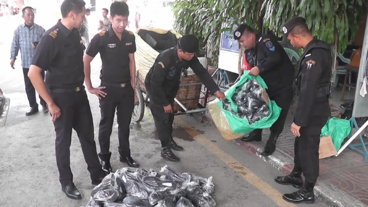 จนท.ด่านอรัญประเทศ ตรวจเข้ม เจอคนงานเขมรเข็นรถเข็นกระชังปลาช่อนข้ามแดน ดูเผินๆ เหมือนไปส่งพ่อค้าปลาตลาดโรงเกลือตามปกติ แต่พอจะขอตรวจกลับหันหลังวิ่งหนี ค้นเจอรองเท้าละเมิดลิขสิทธิ์แบรนด์ดัง ซุกมา 180 คู่ ค่าเกือบ 2 แสน...