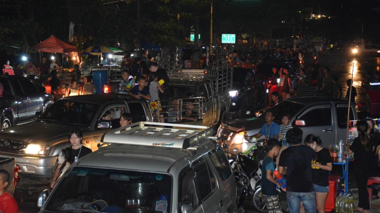ขณะเดียวกัน ยังพบว่ามีประชาชน นักท่องเที่ยว หนุ่มสาว นั่งรถกระบะบรรทุกน้ำวิ่งเวียนสาดน้ำสงกรานต์ไปทั่วเขตเทศบาลเมืองจันทบุรี ทางเจ้าหน้าที่หลายหน่วยงาน ต้องจัดกำลังเสริมเพื่อดูแลรักษาความปลอดภัย รวมทั้งอำนวยความสะดวก เรื่องการจราจรบริเวณโดยรอบ ที่เชื่อมโยงเข้าพื้นที่ด้านใน ริมทะเลสาบทุ่งนาเชย ถนนมหาราช ส่งผลให้การจราจรติดขัดเป็นอย่างมาก แต่ถ้าเข้าไปในเขตถนนข้าวทิพย์ จะมีเจ้าหน้าที่และเครือข่าย คอยสอดส่องพฤติกรรมของผู้เล่นน้ำหากพบมีการดื่มสุราของมึนเมาจะเชิญตัวออกจากพื้นที่ หากไม่เชื่อฟังจะจับไปสงบสติอารมณ์ภายในห้องควบคุมของกองอำนวยการฯ