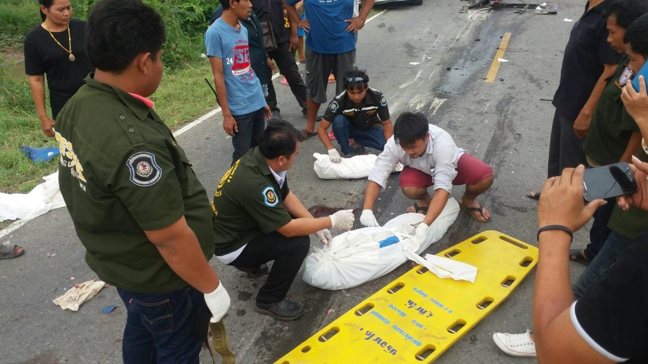 ที่เกิดเหตุ พบศพ ด.ญ.กิตติพร รู้ระวัง อายุ 7 ปี อยู่บ้านเลขที่ 102 หมู่ 2 ต.วังน้ำเย็น อ.บางปลาม้า จ.สุพรรณบุรี และ ด.ช.ศิริพงษ์ แก้วสุกใส อายุ 2 ขวบ อยู่บ้านเลขที่ 70/4 หมู่ 2 ต.ศาลาขาว อ.เมือง จ.สุพรรณบุรี ใกล้กันมีซากรถ ยี่ห้อฮอนด้าเวฟ สีน้ำเงิน ทะเบียน ขขพ 107 สุพรรณบุรี สภาพพังยับเยิน ส่วนริมถนนมีชิ้นส่วนซาเล้งพ่วงข้าง พบรถสิบล้อ ยี่ห้ออีซูซุ สีขาว ทะเบียน 80-0789 สิงห์บุรี จอดอยู่ ทราบชื่อคนขับ นายนุชา คุมพล อายุ 54 ปี ชาวจังหวัดสุพรรณบุรี นอกจากนั้น ยังมีผู้บาดเจ็บอีก 2 ราย มีอาการสาหัส คือ น.ส.สิริพร เปียบาน อายุ 38 ปี และนางตุ๊ เปียบาน อายุ 64 ปี ถูกนำตัวส่ง ร.พ.เจ้าพระยายมราช ไปก่อนแล้ว