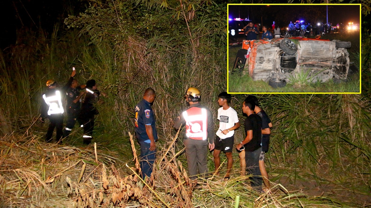 รถเก๋งแต่งซิ่งวิ่งมาดีๆ ลงข้างทางพลิกคว่ำพังยับหงายท้องล้อชี้ฟ้า บนถนนสายยุทธศาสตร์ 331 อ.สัตหีบ เห็นอยู่หลัดๆ แต่พอไปหาไม่มีคนขับ ล่องหนหายไปได้ ในป่าใกล้เคียงก็ไม่มี ทั้งที่ในรถมีเบียร์แช่เย็นยังไม่เปิด 2 ขวด...