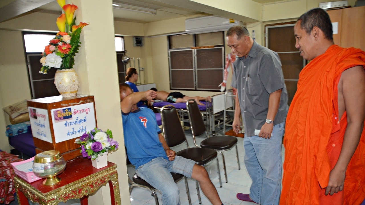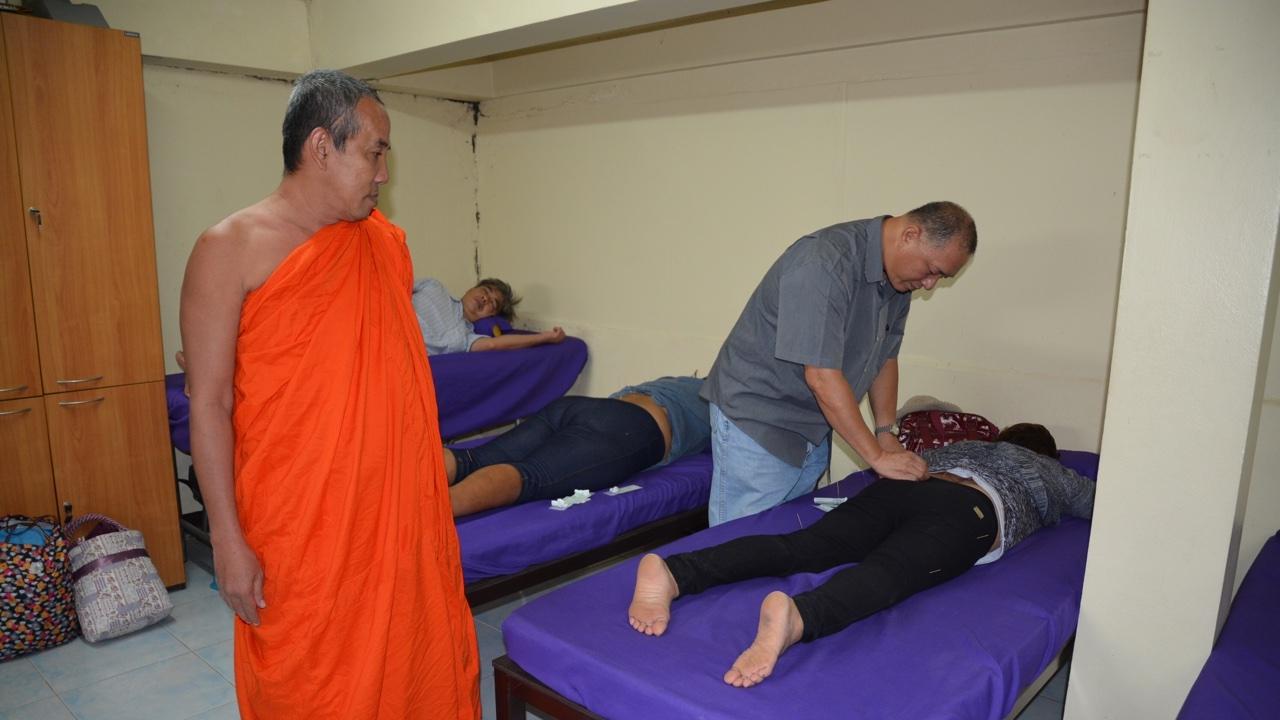 เจ้าอาวาสวัดบางพูดนอก นนทบุรี เปิดคลินิกฝังเข็ม มีหมอผู้เชี่ยวชาญประจำวัดทุกวัน ช่วยญาติโยมเจ็บป่วย ในราคาเข็มละ 2 บาท ค่ารักษา 100 บาท พิเศษวันจันทร์รักษาฟรี เก็บแต่ค่าเข็มเท่านั้น