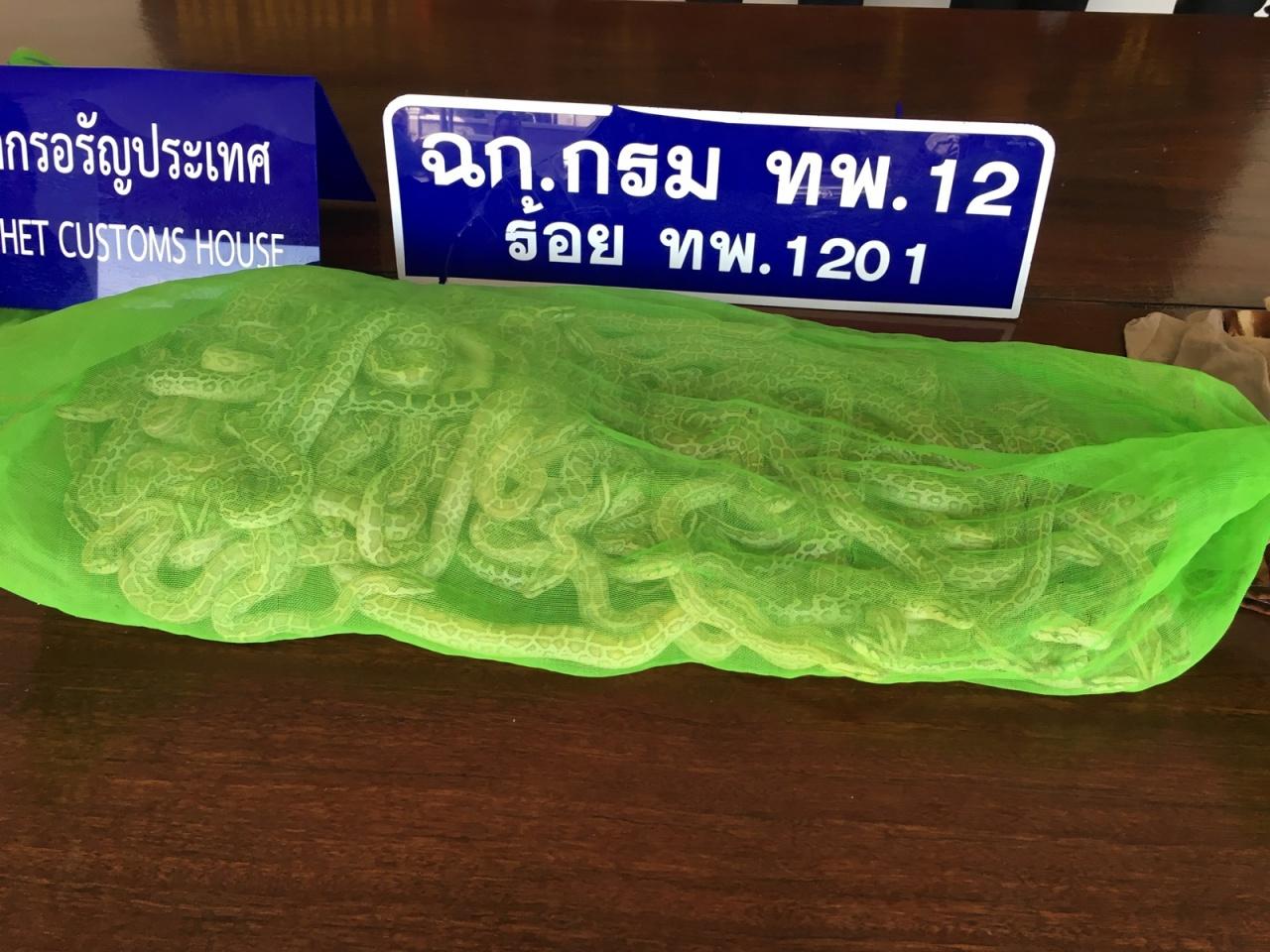 ต่อมาประสานไปยัง นายสายชล โพธิศิริ หัวหน้าด่านตรวจสัตว์ป่าอรัญประเทศ นำเจ้าหน้าที่มาร่วมตรวจสอบ พบว่าเป็นลูกงูหลามพันธุ์ไฮโป ลอบนำเข้ามาจากประเทศเวียดนาม 57 ตัว และมีลูกงูหลามเผือกไฮโป อีก 2 ตัว รวมเป็น 59 ตัว สันนิษฐานว่าเป็นลูกงูคอกเดียวกัน จะลักลอบไปส่งขายให้พ่อค้างูสวยงามที่ตลาดนัดสวนจตุจักร ใน กทม. เพราะมีผู้ที่ชื่นชอบเลี้ยงงูประเภทสวยงามมาหาซื้อกันมาก สนนราคาตัวละประมาณ 1,000-2,500 บาท จากนั้นเจ้าหน้าที่จึงส่งมอบให้ด่านตรวจสัตว์ป่าอรัญประเทศ ส่งไปที่สถานีเพาะเลี้ยงสัตว์ป่าช่องกล่ำบน อ.วัฒนานคร จ.สระแก้ว ต่อไป.