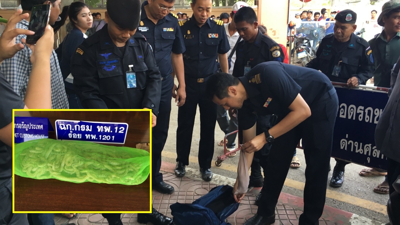 จนท.ด่านอรัญประเทศ แตกกระเจิง หนุ่มเขมรทิ้งกระเป๋าเป้วิ่งหนี หวั่นเป็นระเบิด แจ้งทหารช่วยตรวจสอบ พบลูกงูหลามไฮโปเกือบ 60 ตัว คาด เตรียมส่งสวนจตุจักร
