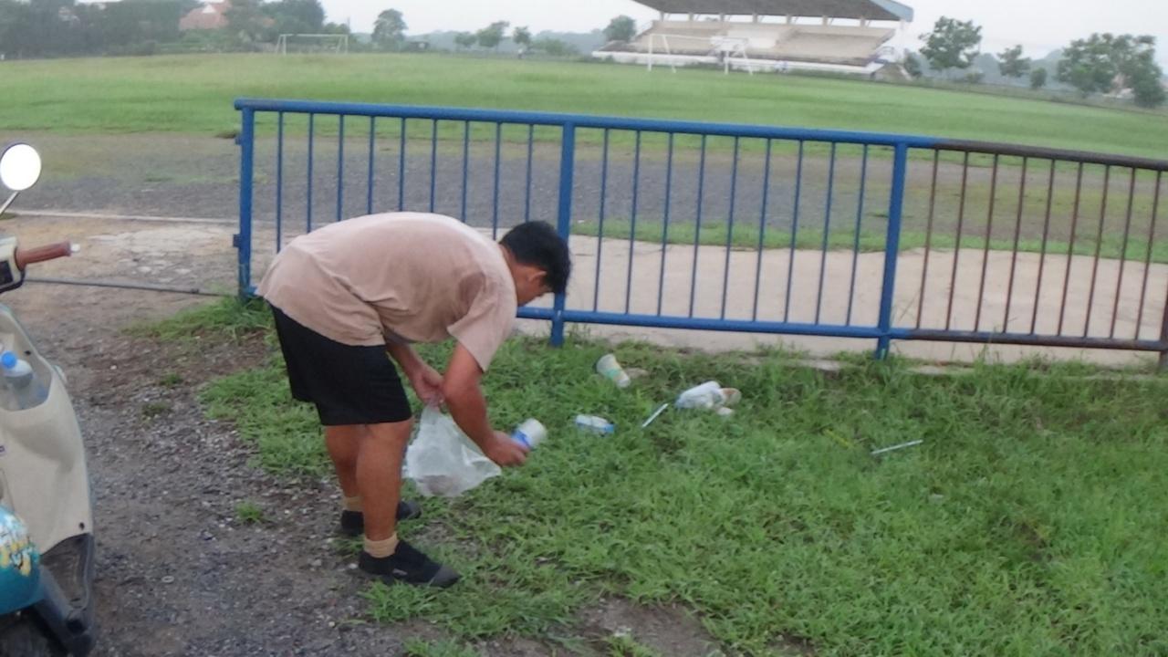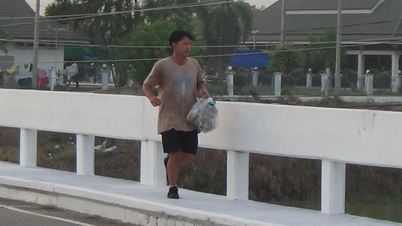 "เมื่อออกกำลังกายเสร็จแล้ว ก็ได้วิ่งกลับบ้าน ค่อยๆ เลาะเก็บน้ำ ถุงพลาสติก ขยะที่ถูกทิ้งไว้บริเวณข้างทาง นำมาทิ้งที่ถังขยะบริเวณหน้าหมู่บ้านทุกวัน โดยได้ลงมือทำมาแล้ว 4-5 เดือน มีความสุขและสบายใจและจะทำต่อไป".