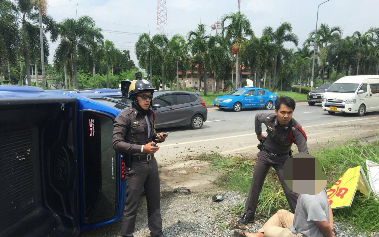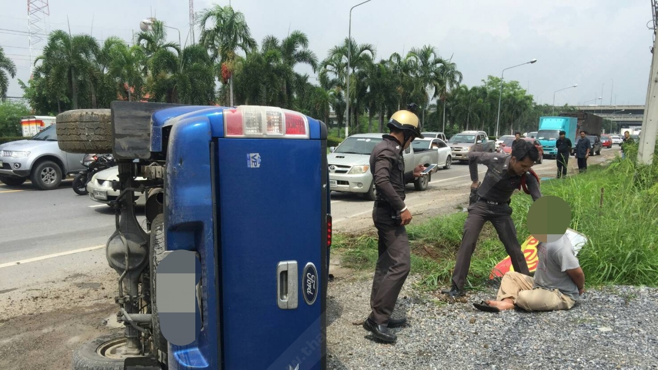 ไล่ล่าระทึก หนุ่มเสพไอซ์ซิ่งกระบะเจอด่านตำรวจ ถอยรถหนีเหยียบมิดข้ามเกาะกลางถนน จากเมืองนนท์มาปทุมฯ เกือบถึงรังสิต ขับน่าหวาดเสียวปาดซ้ายปาดขวา จนพลิกคว่ำสิ้นฤทธิ์โดนรวบในสภาพสะบักสะบอม...