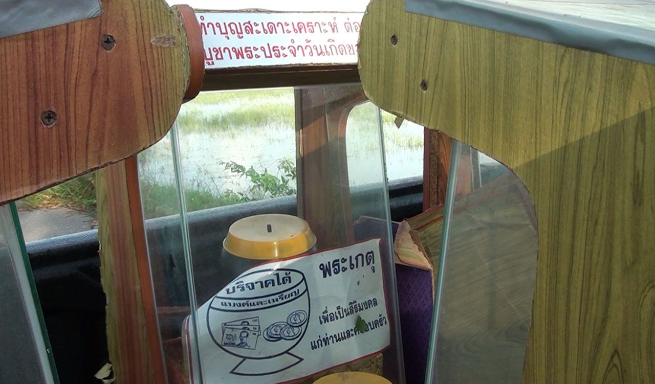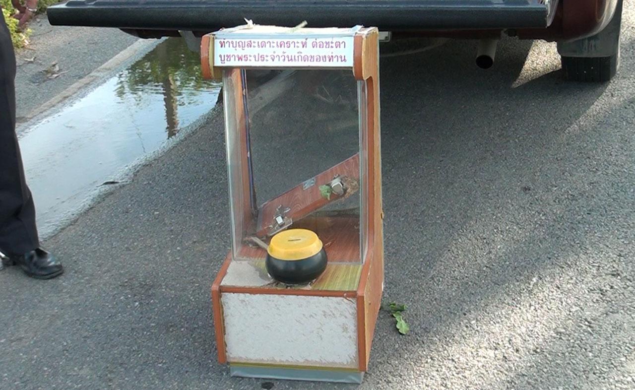 ด้าน นายสุเวช เสือพุก อายุ 51 ปี ชาวบ้านที่เห็นเหตุการณ์ เปิดเผยว่า ช่วงเวลาประมาณ 14.00 น. เห็นรถยนต์กระบะสีขาวจอดอยู่ แต่จำทะเบียนและยี่ห้อไม่ได้ ส่วนข้างทางเห็นชาย 2 คน อายุประมาณ 20-30 ปี กำลังช่วยกันงัดตู้ไม้ แต่ตอนนั้นไม่ได้เอะใจอะไรเพราะตนรีบไปทำนา พอขากลับก็เห็นว่าเป็นตู้บริจาคของทางวัด จึงรีบแจ้งเจ้าหน้าที่ทันที