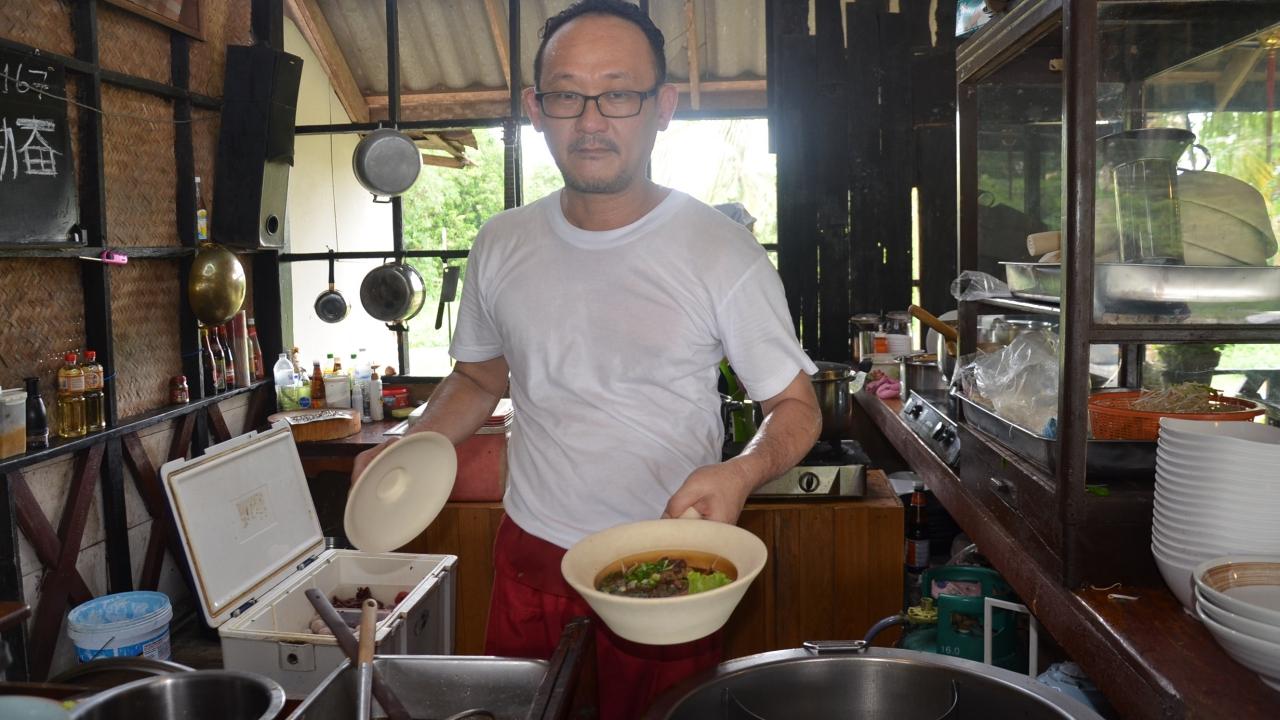 ส่วนเนื้อต่างๆ ตนก็จะไปเลือกซื้อและคัดมาด้วยตนเอง เพราะการทำก๋วยเตี๋ยวแต่ละชาม ตนจะคำนึงถึงตนเองเป็นหลัก เราชอบอย่างไร ก็จะใส่ใจ ปรุงรสออกมาให้ลูกค้าอย่างนั้นในทุกๆ ชาม จึงอยากให้คนที่ชื่นชอบในเนื้อตุ๋นเครื่องใน และส่วนต่างๆ ที่เป็นเนื้อ มาลิ้มลองรสชาติของน้ำซุปและเครื่องปรุง ที่ทำให้รสชาติจัดจ้าน จนคนที่มาทานต้องกระแอมในคำแรกที่ซดน้ำ ซึ่งส่วนผสมที่ทำให้ลูกค้าต้องกระแอมนั้นก็คือ พริกโถ ที่ตนนั้นหมักมาอย่างดี ใช้พริก มะนาว และส่วนผสมต่างๆ ปรุงรสจนกลมกล่อม แล้วนำมาราดบนก๋วยเตี๋ยว ก่อนใส่น้ำซุปไปเสิร์ฟให้ลูกค้า