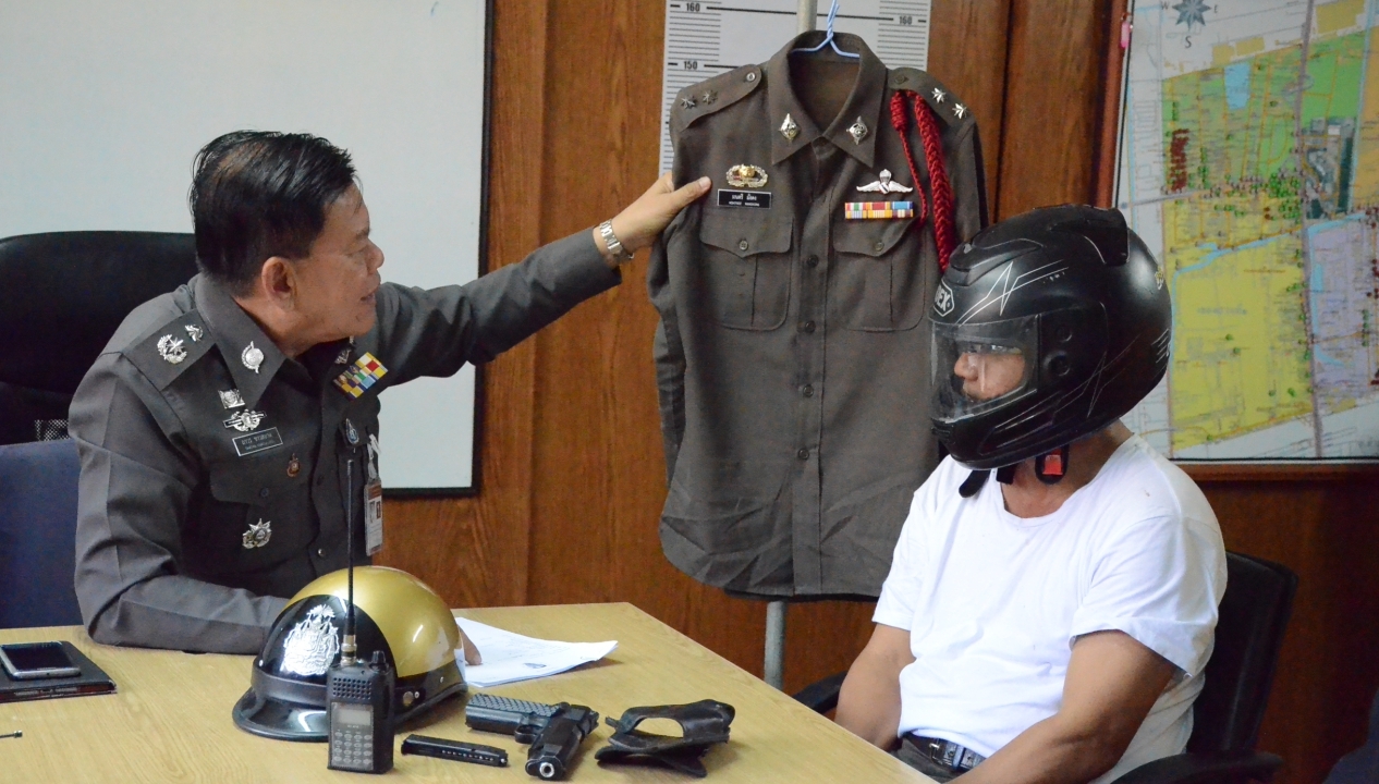 พ่อค้าอาหารตามสั่งย่านดอนเมือง ตีเนียนแต่งชุดร้อยตำรวจโท ออกต้มชาวบ้าน ข่มขู่เอาเงิน แถมยังขโมยเงินแม่ค้าตลาดสี่มุมเมือง ตร.ปทุมธานีตามจับ สุดท้ายสิ้นฤทธิ์
