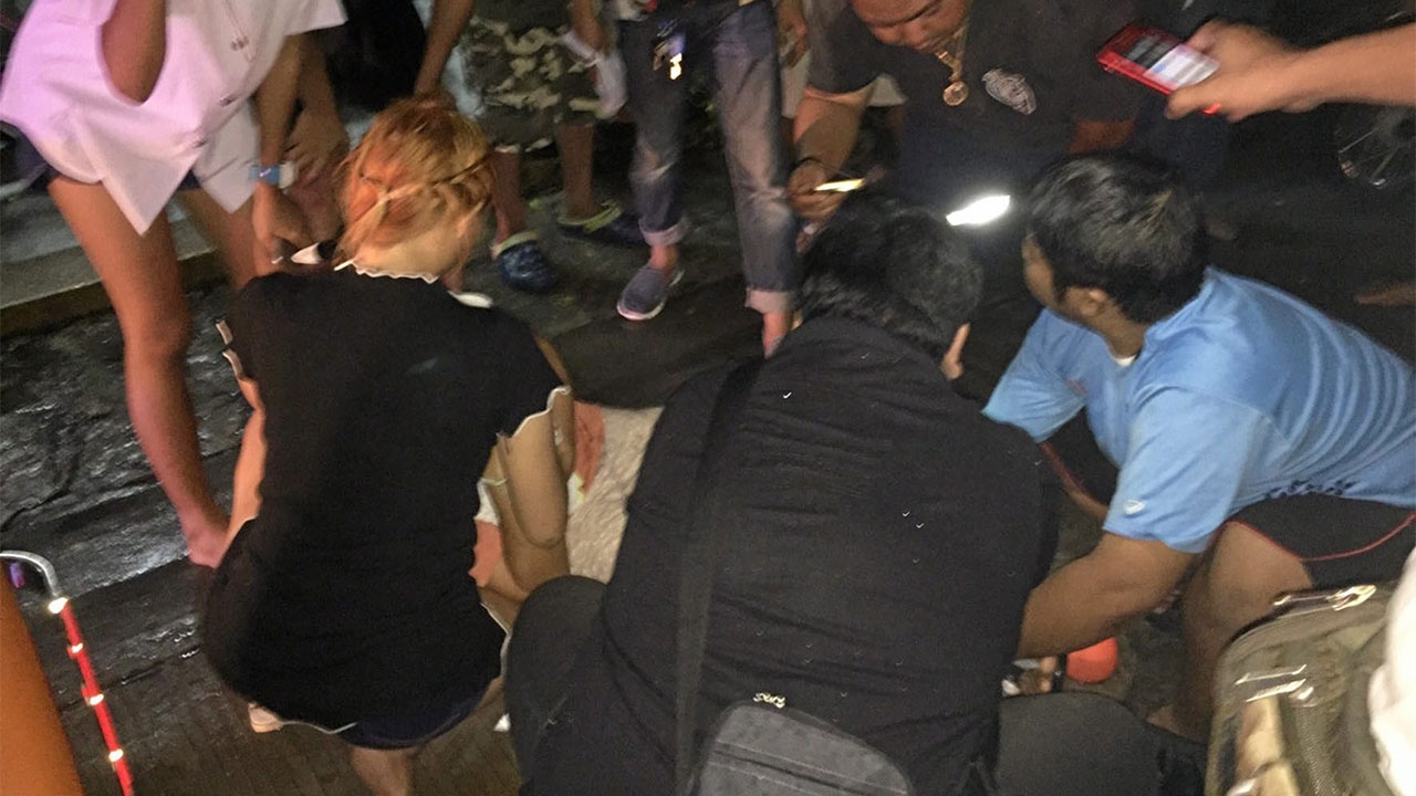 ที่เกิดเหตุบริเวณหน้าอาคารแบ่งเช่าสูง 5 ชั้นไม่มีเลขที่อยู่ริมถนนกลางซอย มีชาวบ้านแตกตื่นออกมามุงดูจำนวนมาก พบผู้บาดเจ็บ 4 คนถูกสะเก็ดระเบิดจากประทัดยักษ์ นอนร้องครวญครางด้วยความเจ็บปวด ประกอบด้วยนางสมบูลย์ ตรีเพ็ชร อายุ 44 ปี มีบาดแผลที่แข้งขวาอาการสาหัส นายธนพล ตรีเพ็ชร อายุ 47 ปี น.ส.เอ (นามสมมติ) อายุ 16 ปี ลูกสาวของนายธนพลกับนางสมบูลย์ และ น.ส.มุก ไม่ทราบนามสกุล อายุ 17 ปี ทั้ง 3 คนถูกสะเก็ดระเบิดที่ขาบาดเจ็บเล็กน้อย เจ้าหน้าที่มูลนิธิช่วยกันปฐมพยาบาลเบื้องต้นก่อนนำส่ง รพ.พระสมุทรเจดีย์