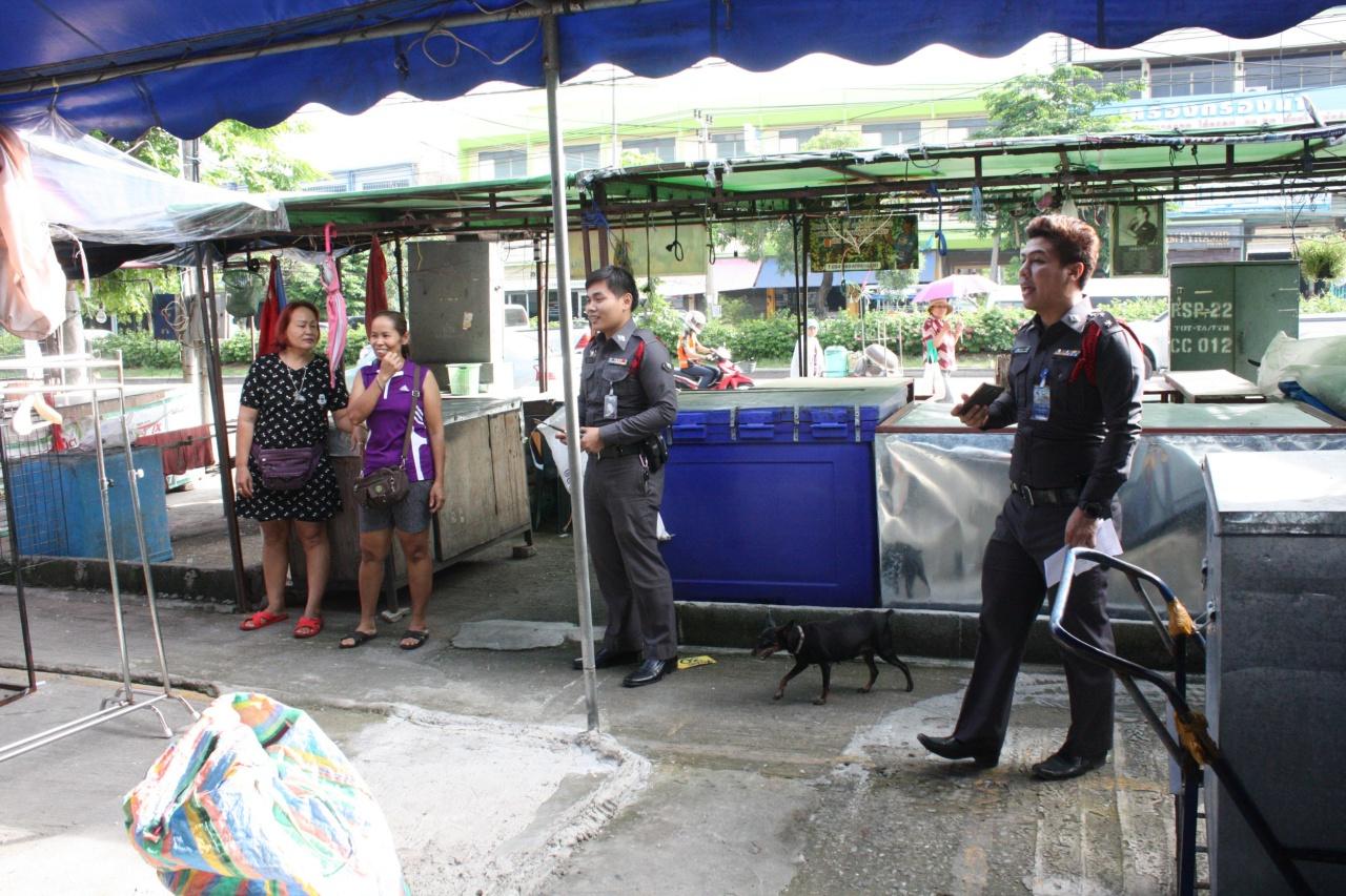 ที่เกิดเหตุพบผู้เสียหายยืนรอให้การกับเจ้าหน้าที่ตำรวจ ตรวจสอบในร้านซึ่งอยู่ในเต็นท์ พบว่าถังแช่ซึ่งมีโซ่กุญแจคล้องอยู่ถูกคนร้ายทุบลูกกุญแจจนหลุด ก่อนที่จะถูกขโมย น้ำปลา พริก ปลาร้า ผักดอง หมู ไป นอกจากนี้ ร้านที่อยู่ใกล้กัน ยังพบว่าได้ถูกขโมยเสื้อผ้าซึ่งใส่ไว้ในถุงซึ่งเก็บไว้ในเต็นท์ ไปอีกด้วย