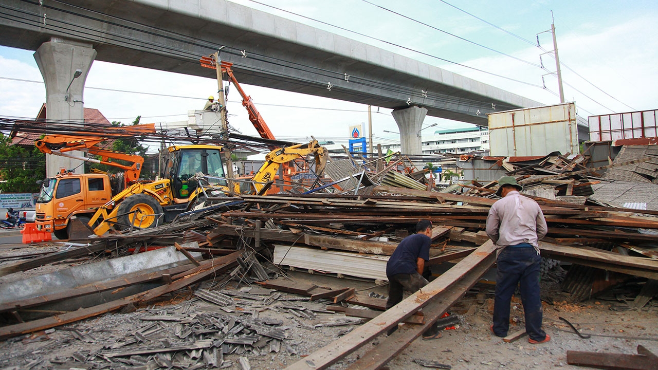 โกดังเก็บไม้แปรรูปขนาดใหญ่ย่านปากน้ำ พังถล่มลงมาทั้งหลัง คนงานหนีตายรอดหวุดหวิด สรุปสาเหตุปลวกแทะ เพราะตัวอาคารเป็นไม้ทั้งหมด โดยมีอายุกว่า 41 ปี
