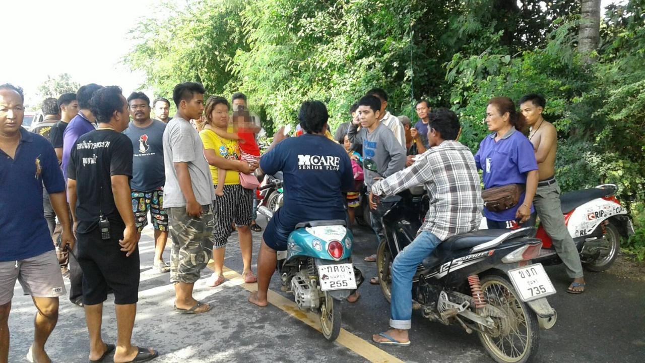 ด้านนายสุบิน วรรณจินดา อายุ 38 ปี ผู้เห็นเหตุการณ์เล่าว่า ขณะเกิดเหตุตนนั่งอยู่ร้านค้าบริเวณแยก หลังจากเกิดเหตุรถเก๋งเลี้ยวขวา ซึ่งรถจักรยานยนต์มาทางตรง จึงถูกพุ่งชนอย่างแรง หลังเกิดเหตุพ่อ ลูกได้ติดบนด้านบนกระโปรงรถเก๋งไป ส่วนแม่นอนเจ็บอยู่บนถนน ตนจึงได้ให้ยืมรถจักรยานยนต์ขี่ตามคนก่อเหตุ และได้ตะโกนให้ชาวบ้านบริเวณนั้น มาช่วยกันติดตาม กระทั่งพบตัวเด็กดังกล่าว