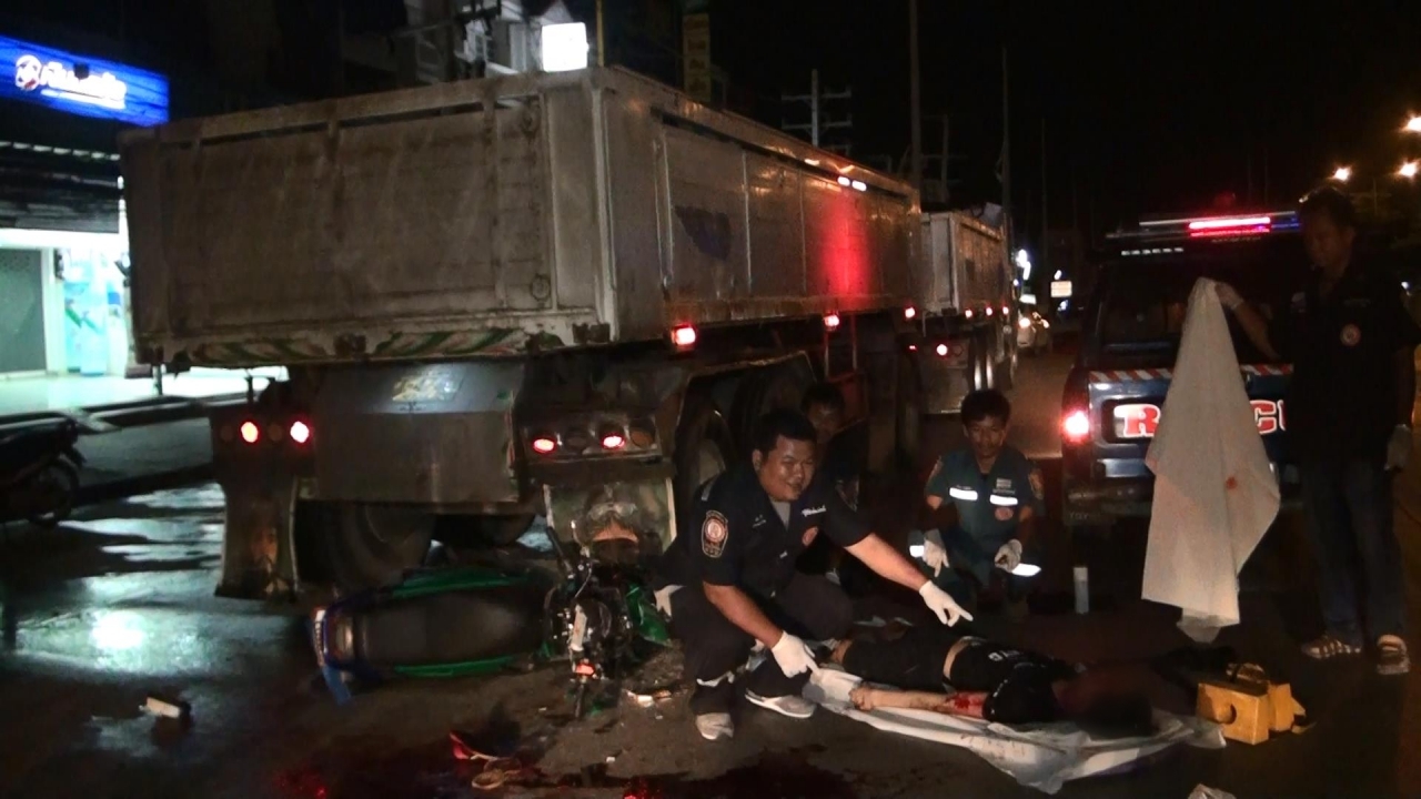 ดวงซวย!! โจ๋วัย 20 ปี ซิ่งจักรยานยนต์พาเพื่อนสาวนั่งซ้อนท้าย เกิดพลาดพุ่งชนท้าย 18 ล้อ ดับคาที่ 1 เจ็บ 1 บริเวณถนนโรจนะอยุธยา-วังน้อย...