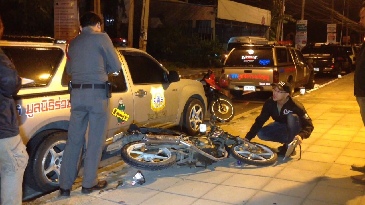 อุบัติเหตุที่บางบัวทอง หนุ่มวัย 23 ควบ จยย.คู่ใจมากับเพื่อน เร่งเครื่องจะแซง เป็นช่วงเข้าโค้งพอดี ประกอบกับฝนตกถนนลื่น รถหลุดไปชนขอบฟุตปาท ร่างลอยกระเด็นไปตก แล้วไถลไปไกลร่วม 20 เมตร เสียชีวิตคาที่...