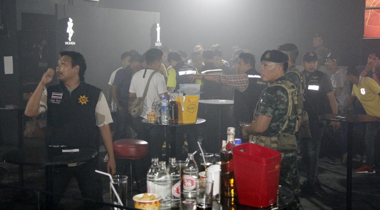 ทหาร-ฝ่ายปกครองชลบุรี เข้าจับผับดังพัทยา พบวัยรุ่นชายหญิงกำลังสนุกสนานกับเสียงเพลง จึงสั่งให้หยุดพร้อมตรวจฉี่พบ 22 รายสีม่วง รวมทั้งเจอยาเค 6 ถุง ยาอี 20 เม็ดตกเกลื่อนพื้น นอกจากนี้ยังมีชายฉกรรจ์อ้างตัวเป็นตำรวจก่อนดึงนักเที่ยวหนี...