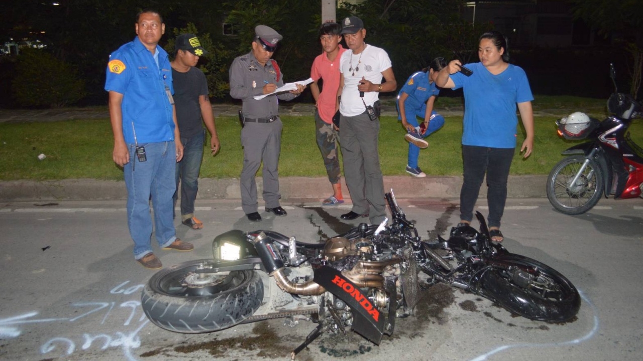 เมื่อเวลา 00.30 น.วันที่ 30 ก.ค. ร.ต.อ.สมศักดิ์ ใจแล รอง สว.( สอบสวน ) สภ.พานทอง พร้อมแพทย์เวร รพ.พานทองและกู้ภัยจตุรธรรมประทีปพานทอง ไปชันสูตรพลิกศพนายศรเพชร นิภาชนะเจน อายุ 31 ปี ชาวบ้าน หมู่ที่ 6 ต.ชุมตาบง อ.ชุมตาบง จ.นครสวรรค์ เสียชีวิตสภาพศรีษะแตกแขนและขาหัก บนถนนในนิคมอมตะนครเฟส 7 หมู่ 3 ต.บ้านเก่า อ.พานทอง จ.ชลบุรี ใกล้กันพบรถ จยย.บิ๊กไบค์ ยี่ห้อฮอนด้า รุ่น CB650F สีดำ ทะเบียน 6 กน 7191 กทม.ล้มอยู่สภาพพังยับโช๊คหน้าขาดออกจากกัน ห่างไปประมาณ 10 เมตร พบรถเก๋ง ยี่ห้อโตโยต้า ยาริส สีดำ ทะเบียน ฎภ 7105 กทม.จอดอยู่กลางถนนสภาพหน้ารถพังยับกระจกบังลมแตก คนขับชื่อนางณัฐชานันท์ ยะรังษี อายุ 45 ปี ชาวบ้านหมู่ที่ 5 ต.บ้านเซิด อ.พนัสนิคม จ.ชลบุรี ได้รับบาดเจ็บเล็กน้อย กู้ภัยฯจึงนำตัวส่ง รพ.พานทอง