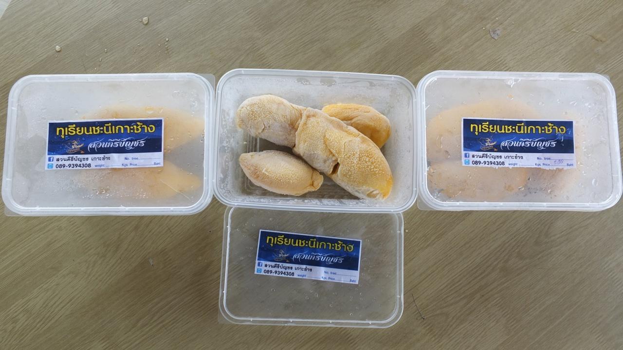 เมื่อเวลา 10.00 น. วันที่ 30 ก.ค. 60 นายมานพ ทองศรีสมบูรณ์ ผู้จัดการ ธกส. สาขาเกาะช้าง และเป็นเจ้าของสวนทุเรียนคีรีบัญชร บ้านด่านใหม่ อ.เกาะช้าง จ.ตราด เปิดเผยว่า ที่ผ่านมาทุเรียนชะนีเกาะช้างนั้นมีชื่อเสียงติดตลาด เป็นที่รู้จักกันไปทั่วไปในเรื่องของรสชาติความอร่อยเฉพาะตัวที่ไม่เหมือนใคร จะให้ผลผลิตตามฤดูกาลในช่วงตั้งแต่เดือน เม.ย.-มิ.ย. เมื่อเลยช่วงฤดูกาลแล้ว ทุเรียนชะนีเกาะช้าง ก็จะหมดไป แต่ก็พบว่ายังมีนักท่องเที่ยวได้ถามหาต้องการที่จะบริโภคอย่างต่อเนื่อง ตนเองจึงได้มีแนวคิดว่าจะทำอย่างไร ถึงจะให้นักท่องเที่ยวที่มาท่องเที่ยวบนเกาะช้างได้ชิมรสชาติของทุเรียนชะนีเกาะช้างได้แบบทั้งปี จึงได้คิดทำทุเรียนแช่แข็ง เพื่อรักษาเนื้อทุเรียนไว้นานๆ รองรับความต้องการของนักท่องเที่ยว