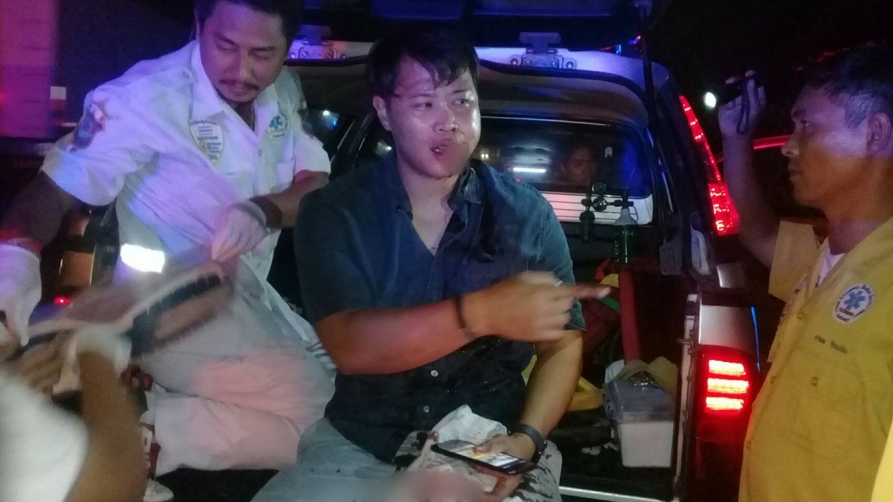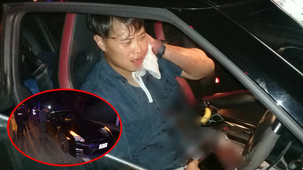 พบ นายศิขรินทร์ หรือกิ๋บ ตั้งเทวาประสิทธิ์ อายุ 34 ปี อยู่บ้านเลขที่ 4 หมู่ 1 ต.ห้วยกะปิ อ.เมือง จ.ชลบุรี นั่งอยู่บนเบาะที่นั่งคนขับรถเก๋งสปอร์ต 2 ประตู ยี่ห้อนิสสัน CTR สีดำ ทะเบียน ชล 35 กรุงเทพมหานคร จอดอยู่ริมถนน มือซ้ายถือผ้าซับเลือดที่ไหลออกจากต้นท้ายทอยด้านซ้าย ที่ถูกกระสุนปืนเจาะเข้าแล้วไปฝังบริเวณกระพุ้งแก้มซ้าย เจ้าหน้าที่กู้ภัยไตรคุณธรรมช่วยพาส่ง รพ.ชลบุรี ส่วนรถมีรอยกระสุนปืนยิงถูกสปอยเลอร์ท้ายรถ 2 รู กระจกบังลมหลัง 1 รู แตกละเอียด ที่พื้นถนนห่างจากท้ายรถเก๋ง เจ้าหน้าที่พบปลอกกระสุนขนาด 9 มม. 2 ปลอก