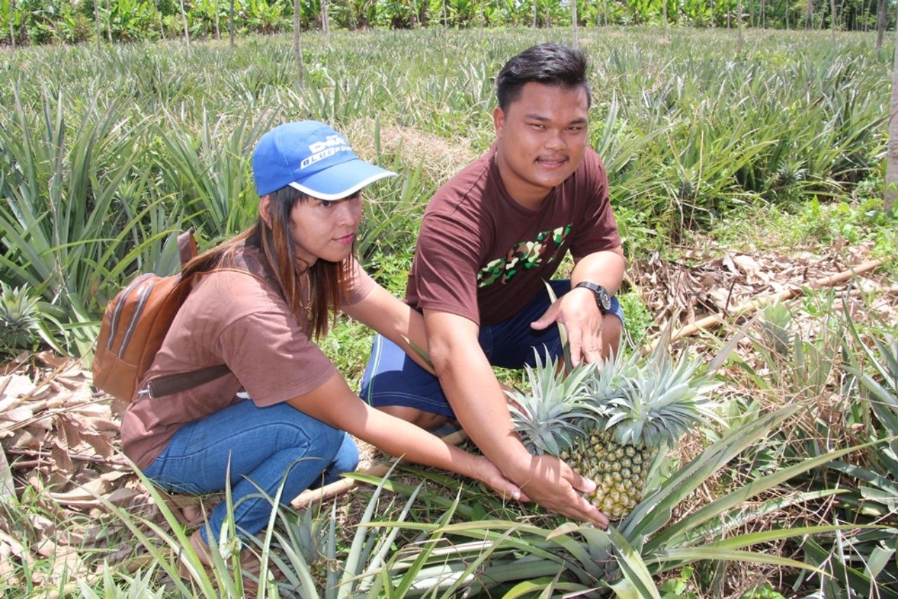 นายอาทิตย์ สันติภาพ พาผู้สื่อข่าวสำรวจภายในไร่ สับปะรด ที่ปลูกแซมอยู่กลางร่องสวนยางพารา เนื้อที่กว่า 8 ไร่ เพื่อไปชมสับปะรด แฝดสาม ที่ตนเองสามารถปลูก และเนรมิตให้ผลสับปะรดออกผลมาเป็น แฝด ตั้งแต่แฝดสาม แฝดสี่ หรือแฝดห้า จากการตรวจสอบโดยละเอียดพบว่า สับปะรดผลดังกล่าว มีรูปร่างเหมือน สับปะรดสายพันธุ์ทั่วไป แต่ที่ประหลาดก็จะเป็น ลักษณะผลของสับปะรด ที่มีก้านเดียวโผล่ออกมาจากกอ แต่ส่วนของผลกลับมีสับปะรด งอกออกมาจากด้านข้าง ติดรวมกันถึง 3 หัว เป็นแฝดสาม ผิดธรรมชาติของสับปะรด ผลอื่นๆ ที่ปลูกอยู่ ในไร่เดียวกัน