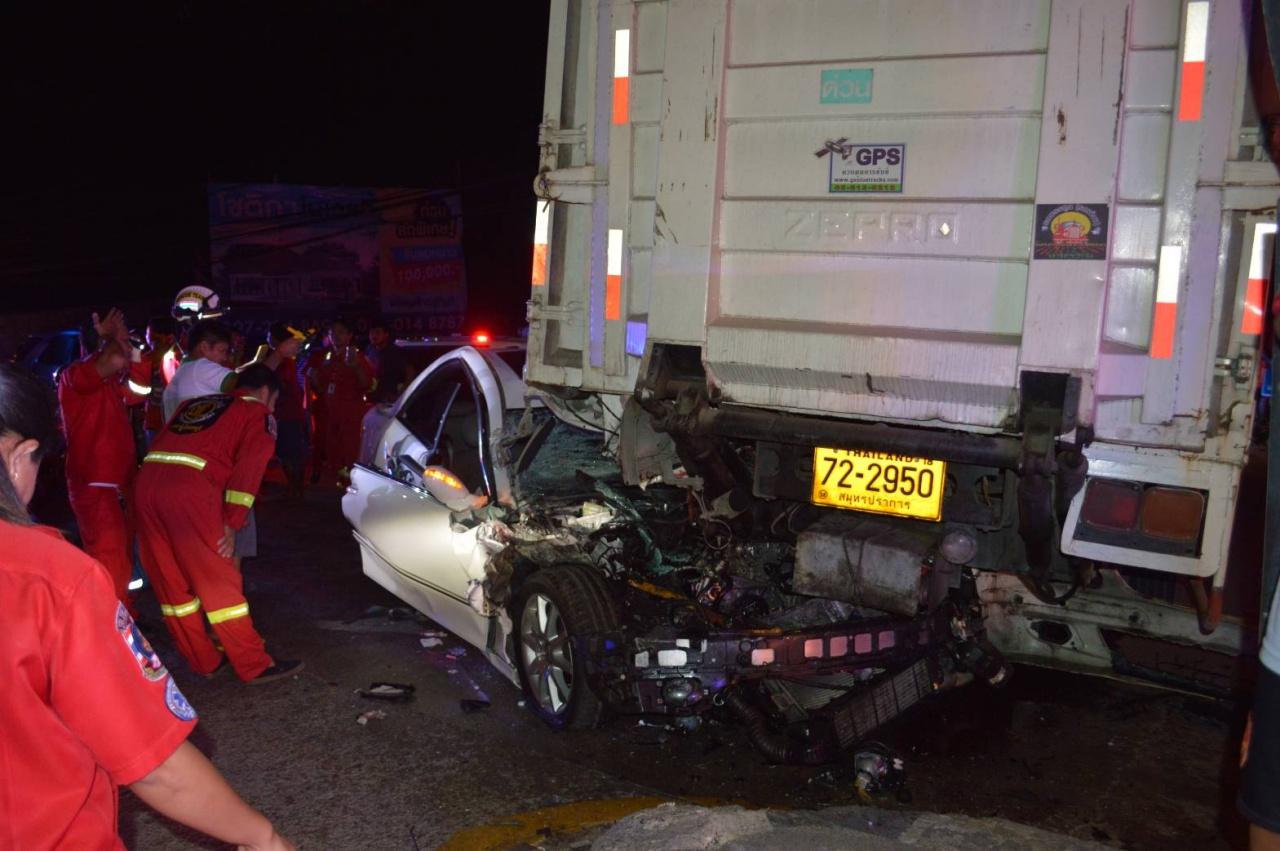 เมื่อเวลา 00.30 น. วันที่ 7 กันยายน ร.ต.อ.สมศักดิ์ ใจแล รอง สว. (สอบสวน) สภ.พานทอง ได้รับแจ้งมีเหตุรถชนกันบนถนนศุขประยูร ขาเข้าเมืองชลบุรี ช่วงยูเทิร์นกลับรถ ก่อนถึงเทศบาลหนองตำลึง หมู่ 5 ตำบลหนองตำลึง อำเภอพานทอง จังหวัดชลบุรี จึงรุดไปตรวจสอบ พร้อมเจ้าหน้าที่กู้ภัยมูลนิธิธรรมรัศมีมณีรัตน์