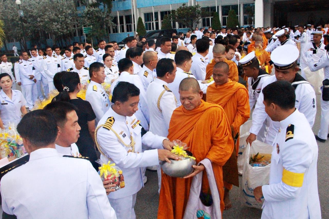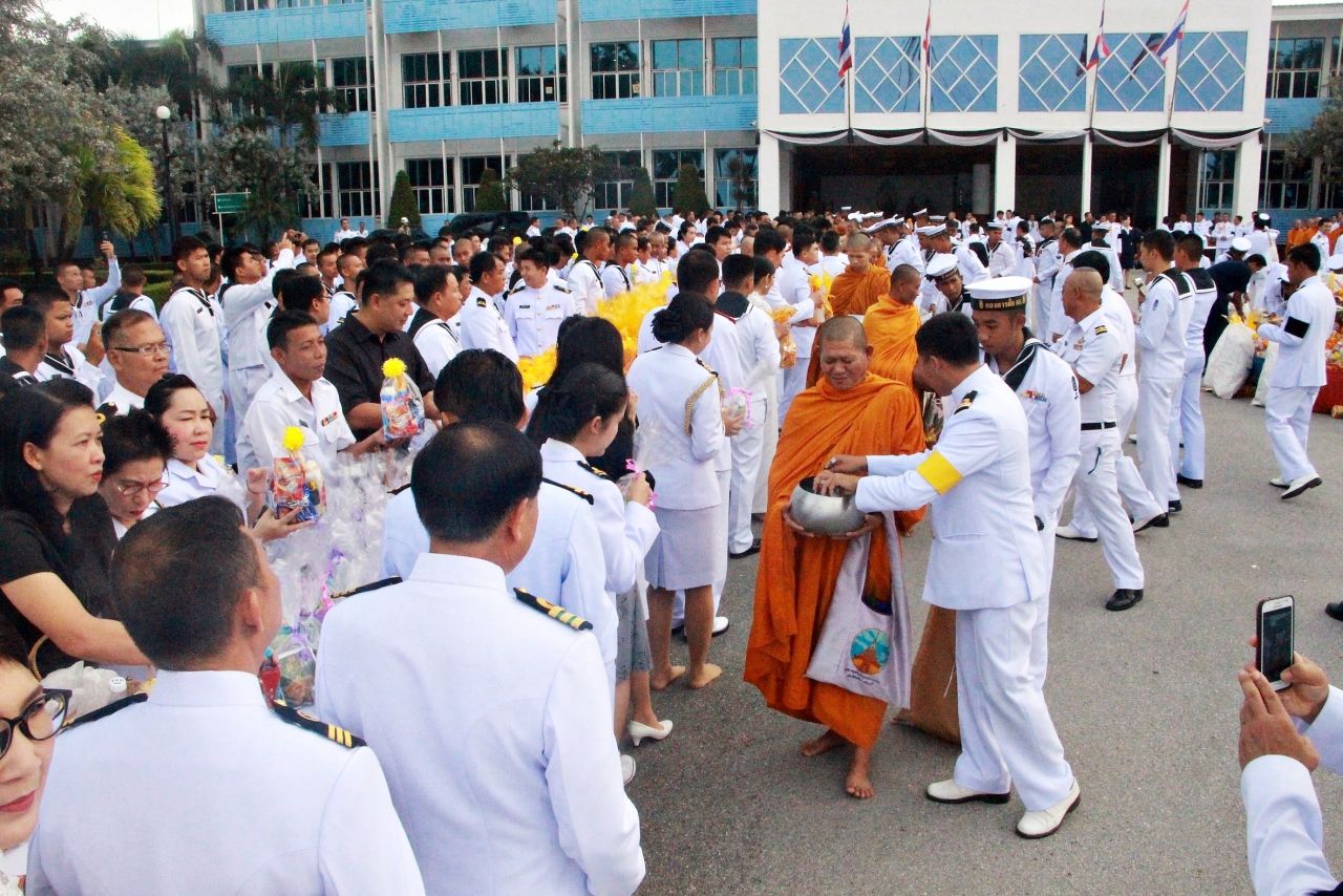 กองทัพเรือจัดพิธีทำบุญตักบาตร ที่หน้ากองบัญชาการกองเรือยุทธการ อ.สัตหีบ ถวายเป็นพระราชกุศล แด่ในหลวง ร.9 ครบ 1 ปี เสด็จสวรรคต