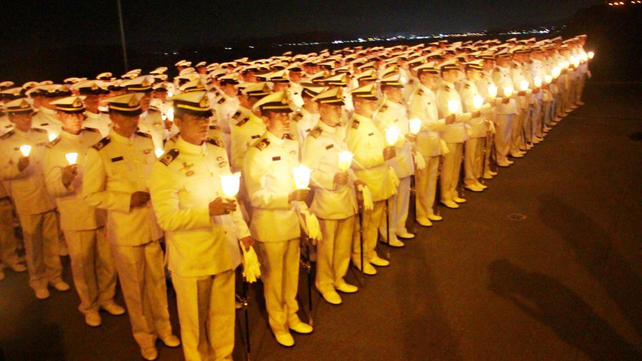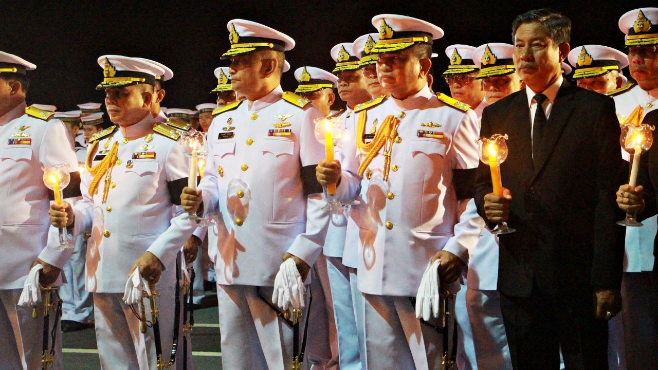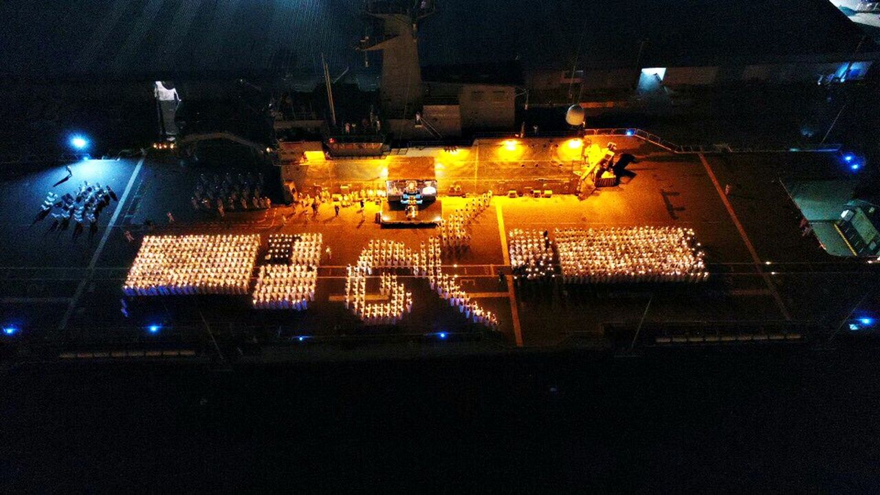 ผผบ.ทร.นำเหล่าทหารกองทัพเรือ จุดเทียน พร้อมแปลอักษร เลข 9 บนเรือหลวงจักรีนฤเบศร สวดบำเพ็ญกุศล เพื่อถวายเป็นพระราชกุศล ครบรอบ 1 ปี วันสวรรคต พระบาทสมเด็จพระปรมินทรมหาภูมิพลอดุลยเดช บรมนาถบพิตร