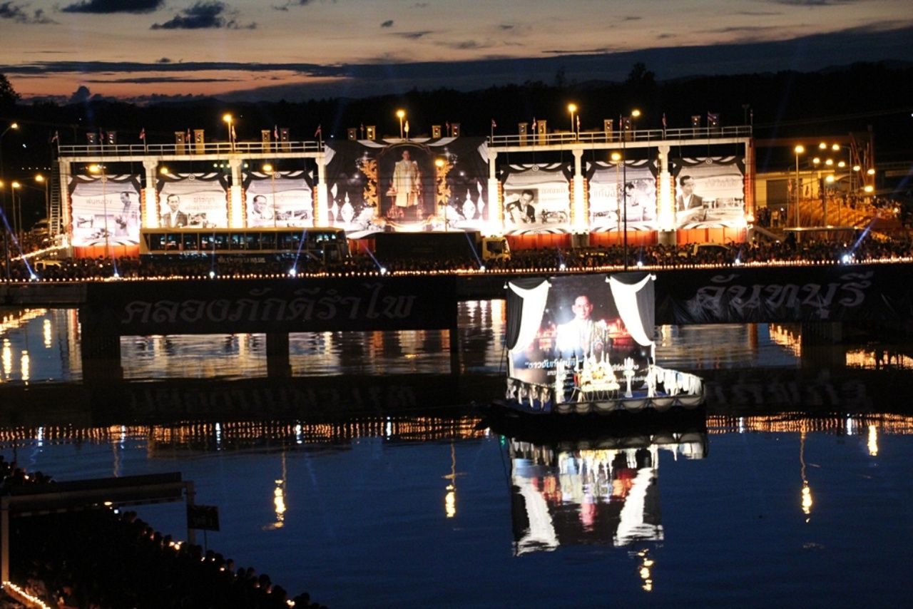 พสกนิกรทุกหมู่เหล่า ทุกสาขาอาชีพ ทุกเพศทุกวัย ใน จ.จันทบุรี พร้อมนำพระบรมฉายาลักษณ์ ขึ้นเหนือหัว ก่อนร่วมกันส่งเสียงร้องเพลงสรรเสริญพระบารมี จุดเทียนแสดงความอาลัย โดยแสงเทียน และเสียงเพลงดังกังวานกึกก้องตลอดแนว 2 ฝั่งคลองภักดีรำไพ และแผ่คลุมไปทั่วทั้ง จ.จันทบุรี โดยครั้งนั้นมีจิตอาสาจำนวนมาก รู้รักสามัคคีและเสียสละส่วนตัว มาช่วยทำให้การจัดงานราบรื่น ทั้งการบริการขนส่งมวลชน การอำนวยความสะดวกแก่ประชาชนเข้าจุดตลอด 2 ฝั่งคลอง