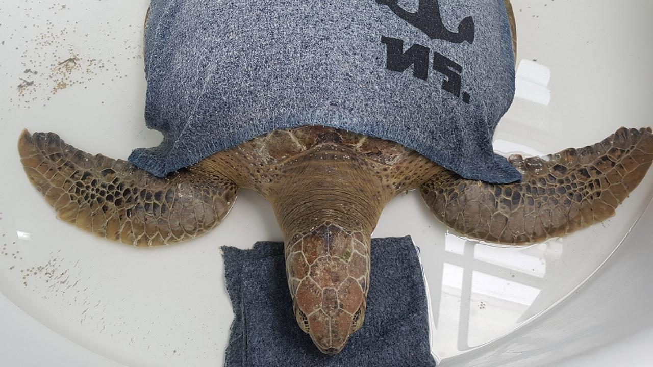 สืบเนื่องจากเมื่อวันเสาร์ที่ 7 ต.ค.60 เวลา 15.40 น. ศูนย์อนุรักษ์พันธุ์เต่าทะเล กองทัพเรือ ได้รับแจ้งจาก คุณฐปน สมบูรณ์ นักดำน้ำว่า พบเต่าทะเลมีอาการตัวลอย ไม่สามารถดำน้ำได้ บริเวณเกาะโรงหนัง จึงนำขึ้นเรือมายังท่าเทียบเรือโชครัตนปรีดา (เดอะชาร์ค) ต.แสมสาร อ.สัตหีบ ศูนย์อนุรักษ์พันธุ์เต่าทะเล กองทัพเรือ จึงได้จัดเจ้าหน้าที่ไปรับเต่าทะเลตัวดังกล่าว มายังโรงพยาบาลเต่าทะเล เพื่อให้สัตวแพทย์ตรวจสุขภาพ เบื้องต้น สันนิษฐานว่า เต่าน่าจะมีอาการปอดชื้น