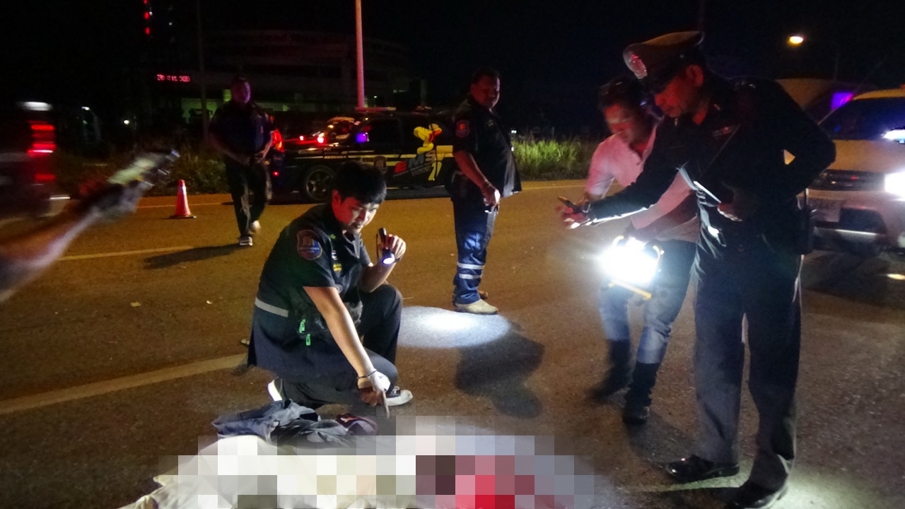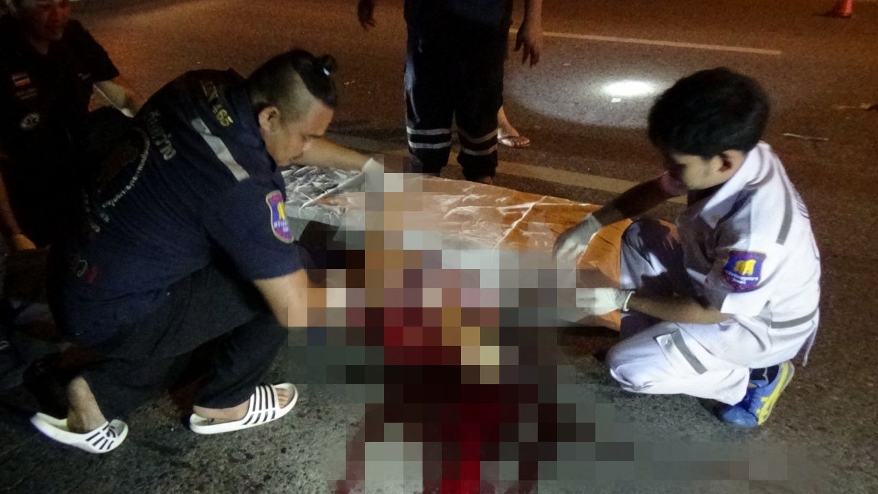 รถกระบะซิ่งชนท้าย รถจยย.ลากไปไกล 150 เมตร บริเวณถนนสายระยอง-กระทิงลาย จ.ระยอง มุ่งหน้าไปพัทยา ดับสยองกะโหลกศีรษะแตกเลือดนองพื้น 1 เจ็บสาหัส อีก 2 คนขับรถกระบะหนีไปไม่รอด รอมอบตัวกับตร.