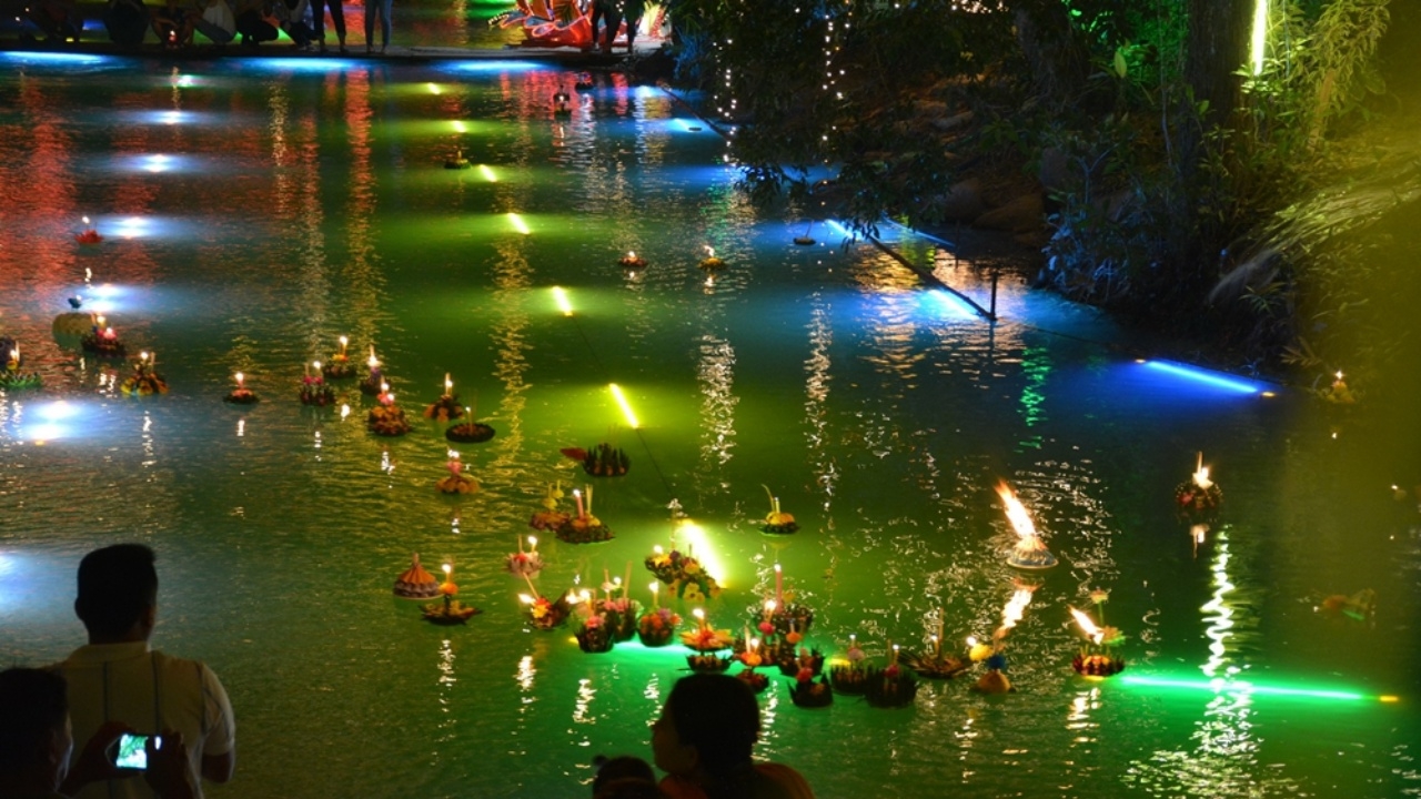 อลังการ วัดซึ้งบน อ.ขลุง จ.จันทบุรี เนรมิตคลองเรืองแสง ด้วยไฟนับล้านดวง สร้างแลนด์มาร์ค งานประเพณีลอยกระทง ทำนักท่องเที่ยวหลายพัน อดใจไม่ไว้หลั่งไหลร่วมงาน ไม่ขาดสาย
