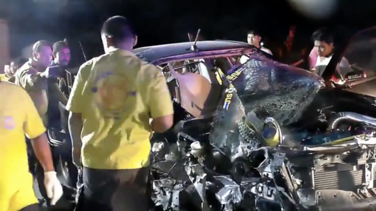 ในที่เกิดเหตุ พบว่า คนเจ็บที่ติดอยู่ภายในรถกระบะ ยี่ห้อ เชฟโรเลต แค๊ป สีดำ ทะเบียน ผผ 419 ชลบุรี ชื่อ นายแจ๊ค บันยา อายุ 32 ปี เป็นชาวกัมพูชา ถูกอัดติดคาพวงมาลัยอยู่ตรงที่นั่งคนขับ สภาพรถกระบะพังยับ เครื่องแตกน้ำมันเครื่องไหลนองถนน กู้ภัยต้องใช้เครื่องตัดถ่าง นำร่างออกมาและส่ง รพ.ปลวกแดง ส่วนรถคู่กรณีที่จอดอยู่ห่างออกไปจากรถกระบะ ประมาณ 15 เมตร เป็นรถตู้ ยี่ห้อ โตโยต้า คอมมูเตอร์ สีขาว ทะเบียน ฮภ 6867 กรุงเทพมหานคร ที่ด้านหน้าข้างขวาพังยับ ล้อหน้าข้างขวาก็หลุดพับ ส่วนคนขับขื่อ นายสังวาลย์ จันทร์เทียน อายุ 51 ปี อยู่บ้าน เลขที่ 101/46 ตำบลเนินพระ อำเภอเมือง จังหวัดระยอง ได้รับบาดเจ็บที่ปาก และขาขวา กู้ภัย ได้นำส่ง รพ.ปลวกแดงไปก่อนแล้ว พร้อมกับนายอภิชาติ นับถือสุข อายุ 31 ปี ที่นั่งมากับรถกระบะ ที่ขับโดยนายแจ๊ค นายอภิชาติได้รับบาดเจ็บที่ปลายคางแตกและเจ็บที่หน้าอก