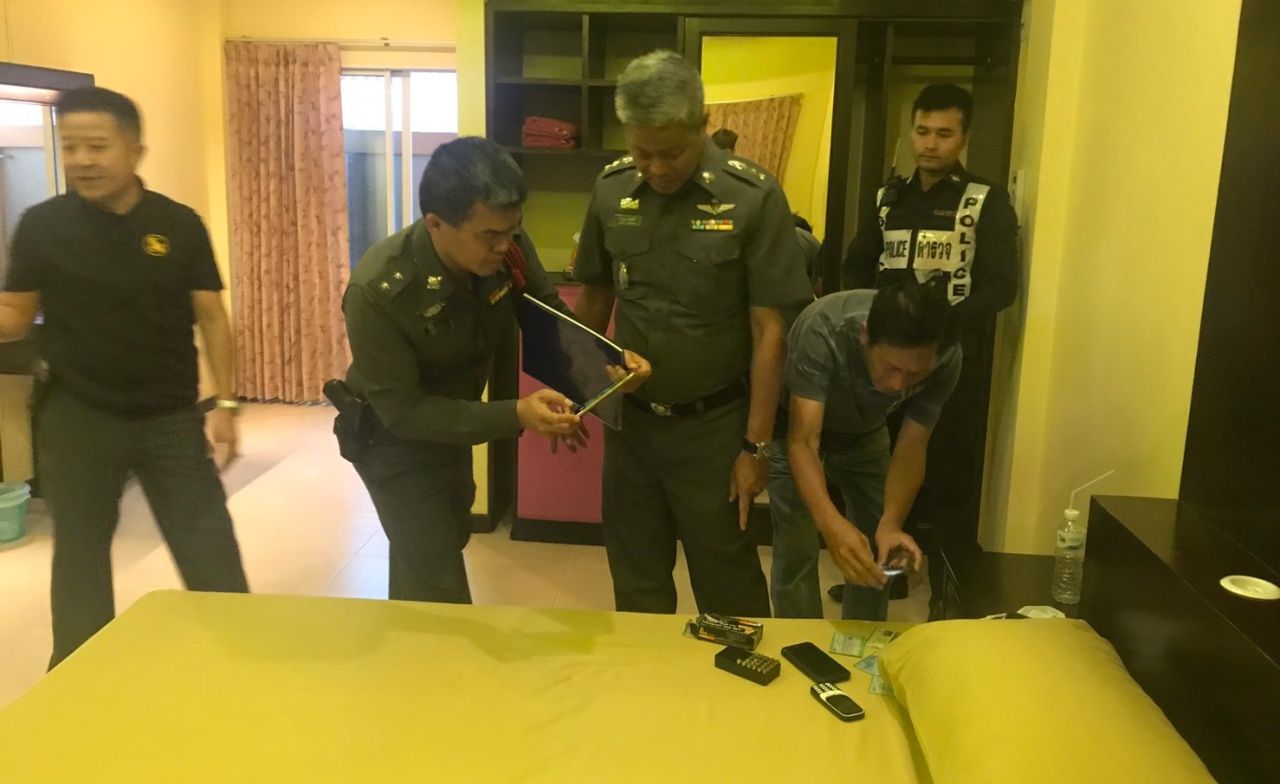 เช้าวันที่ 6 ธ.ค. พ.ต.อ.จิระวุฒิ ตัณฑศรี ผกก.สภ.หนองปรือ พ.ต.ท.วุฒิพงษ์ สมใจ รองผกก.ป.พร้อมด้วยกำลังเจ้าหน้าที่ตำรวจ สภ.หนองปรือ รับแจ้งมีพ่อค้ายาเสพติดเปิดห้องพักที่บ้านเพื่อน รีสอร์ตพัทยา เลขที่ 212/101 ม.5 ซอยเขาน้อย ต.หนองปรือ อ.บางละมุง จ.ชลบุรี หลังรับแจ้งจึงนำกำลังเจ้าหน้าที่ตำรวจ สภ.หนองปรือ รุดไปตรวจสอบ