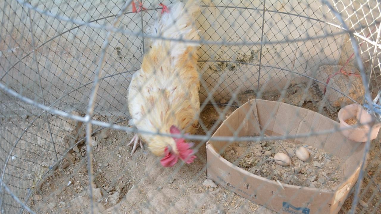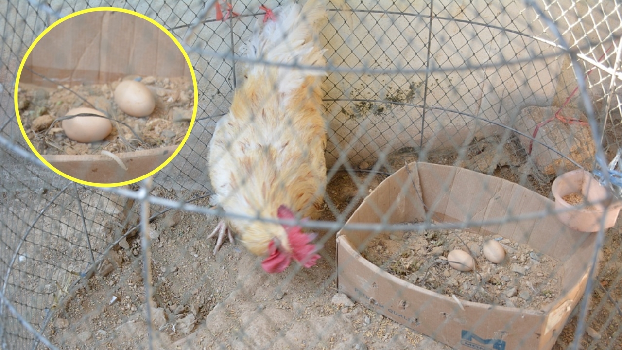 ภายในสุ่ม ที่พื้นพบมีรอยขุดคุ้ยเป็นหลุมขนาดใกล้เคียงกับลำตัว โดยมีกล่องกระดาษใส่ดิน วางอยู่ 1 ใบ โดยที่ภายในกล่องพบมีไข่ไก่จำนวน 2 ฟอง ซึ่งมีรูปร่างผิดแปลก ไปจากไข่ไก่ที่พบเห็นทั่วไป คือ มีลักษณะเรียวยาวคล้ายกับไข่งู แต่มีเปลือกแข็งเหมือนกับไข่ไก่ โดยทาง นางพรฤดี และนายณรงค์ เจ้าของไก่ ยืนยันหนักแน่นว่าไข่ที่วางอยู่ในกล่อง เป็นของเจ้าโต้งจริง